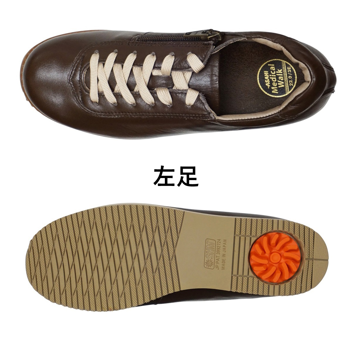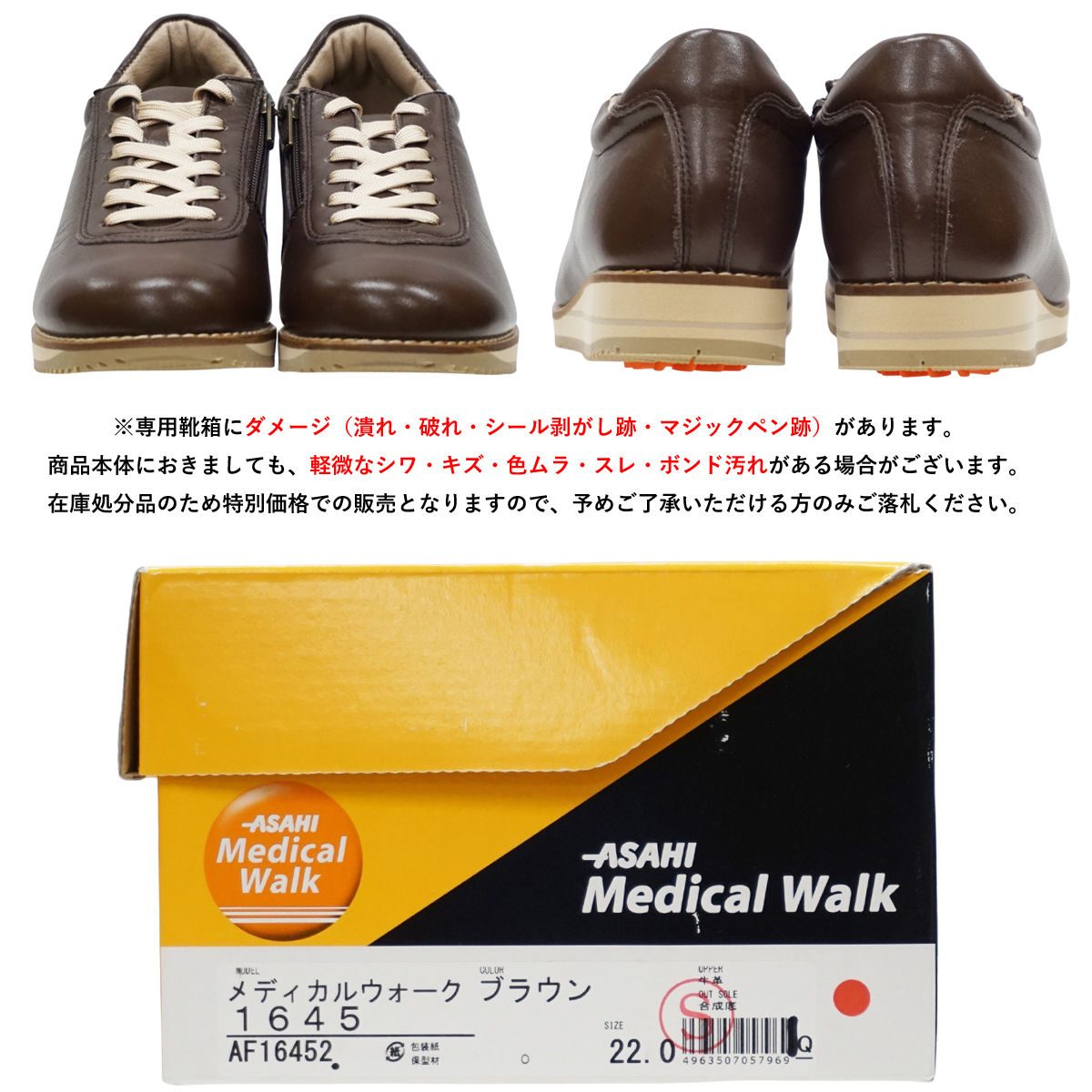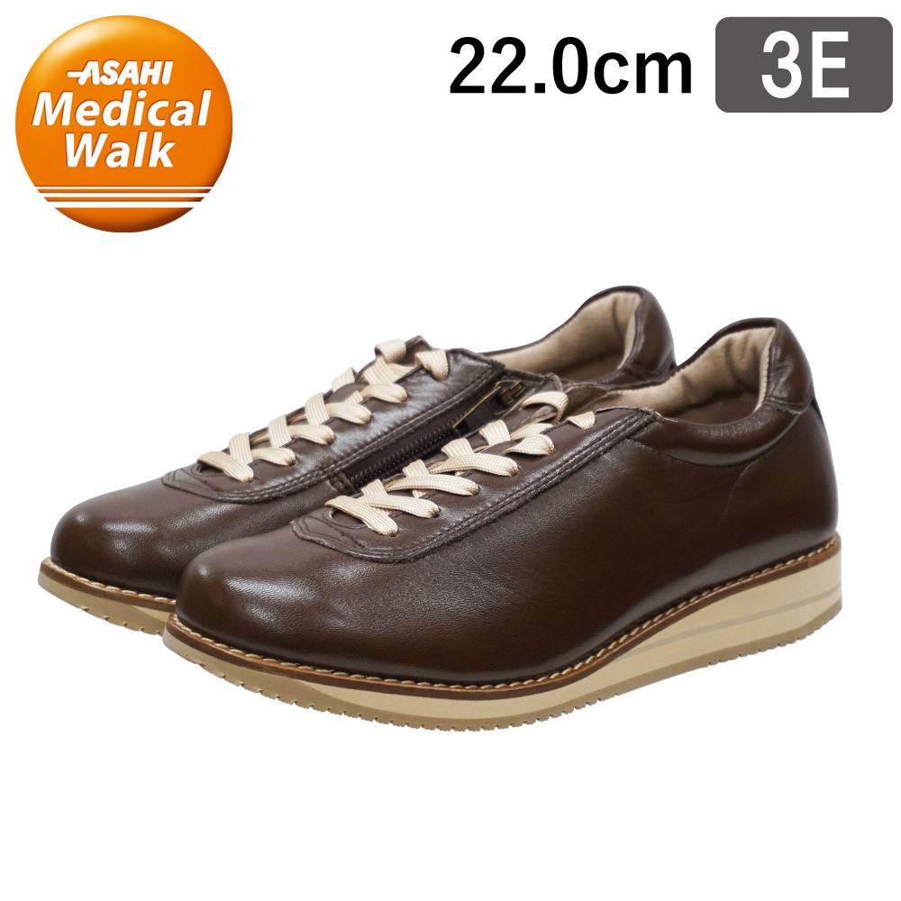 AF16452 ブラウン 22.0cm アサヒ メディカルウォーク 1645(A) レディース 靴 ウォーキングシューズ 3E 天然皮革 日本製 072001