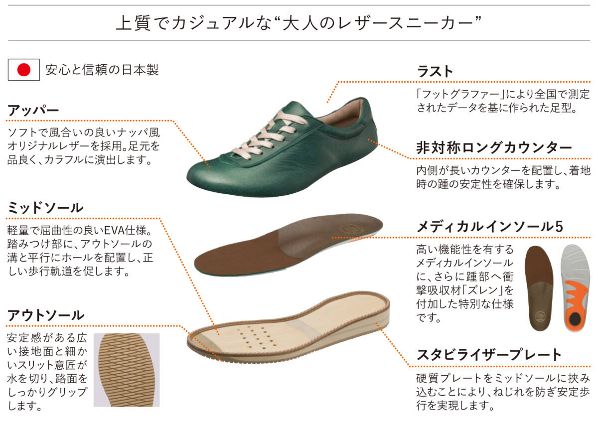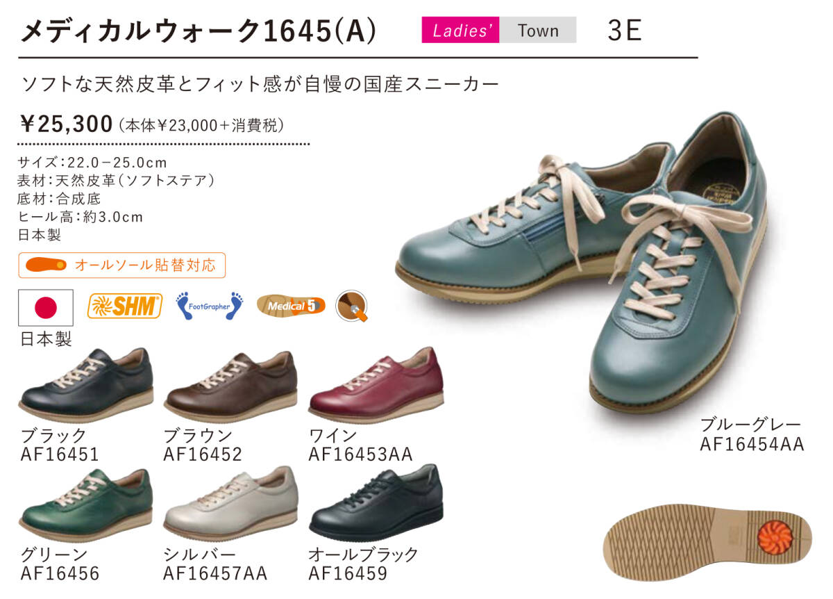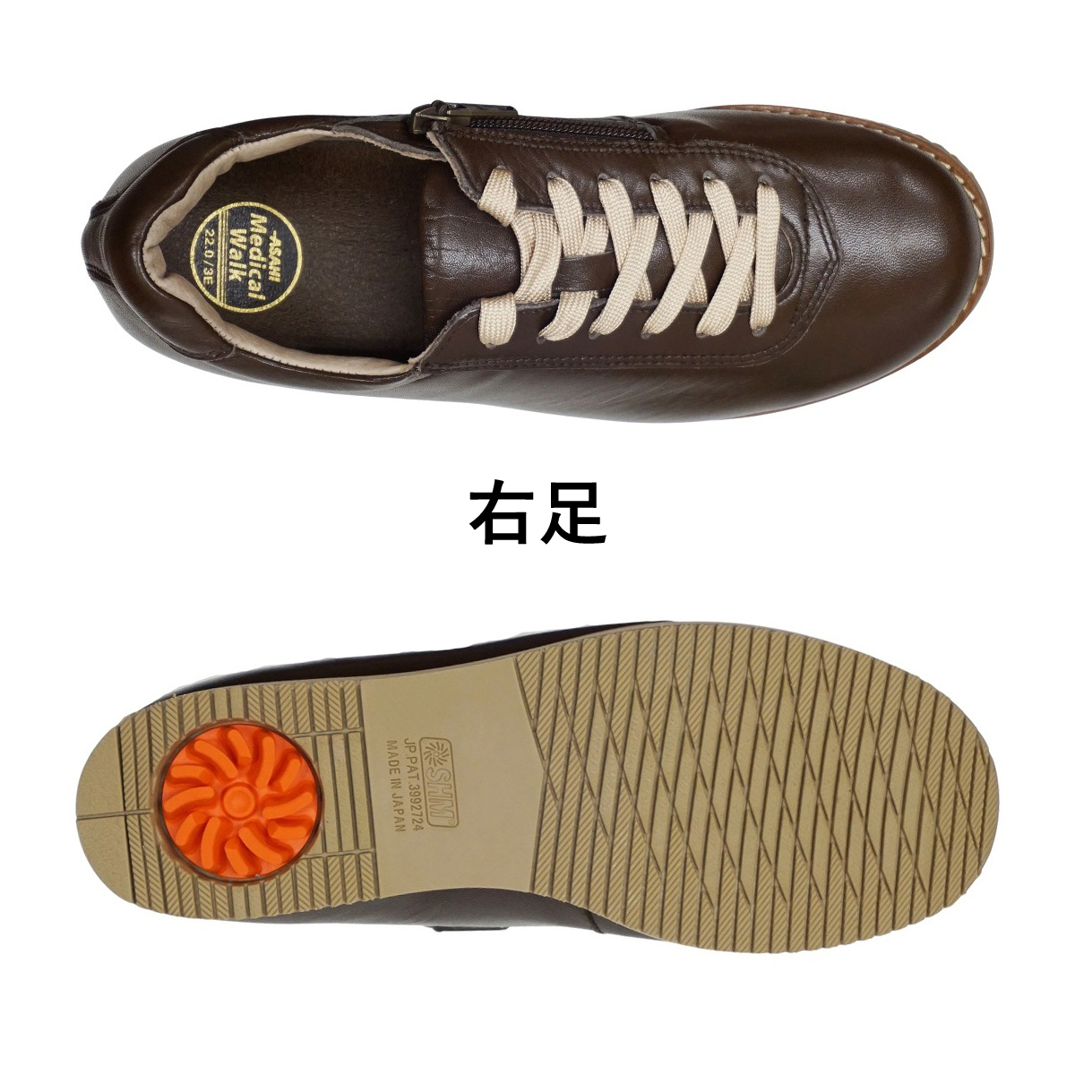 AF16452 ブラウン 22.0cm アサヒ メディカルウォーク 1645(A) レディース 靴 ウォーキングシューズ 3E 天然皮革 日本製 072001