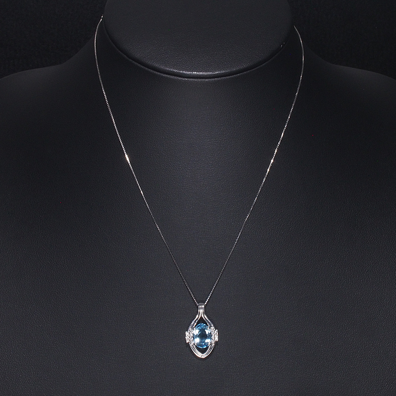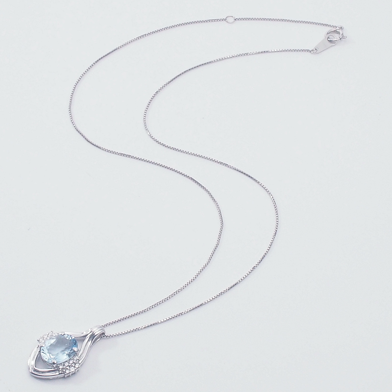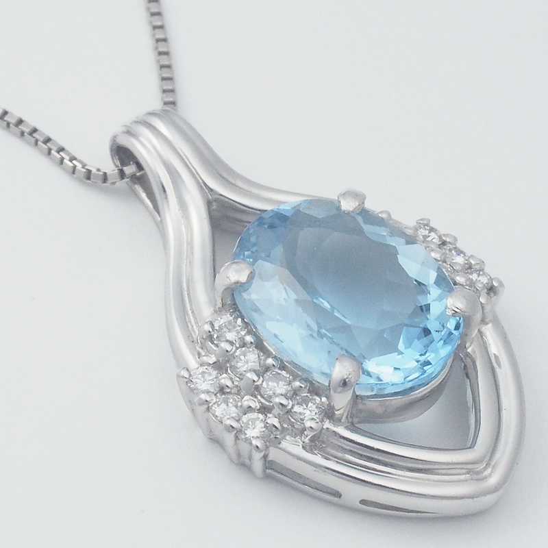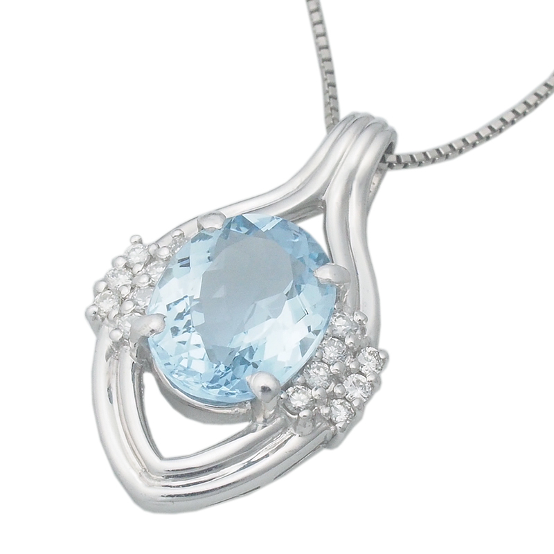 透明感抜群のライトブルーが魅力的なアクアマリンと煌めくダイヤモンドで飾り立てた、プラチナ製のネックレスです。