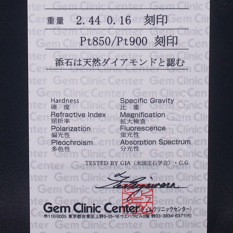 刻印:トップに【Pt900 244 D016】チェーンに【Pt850】