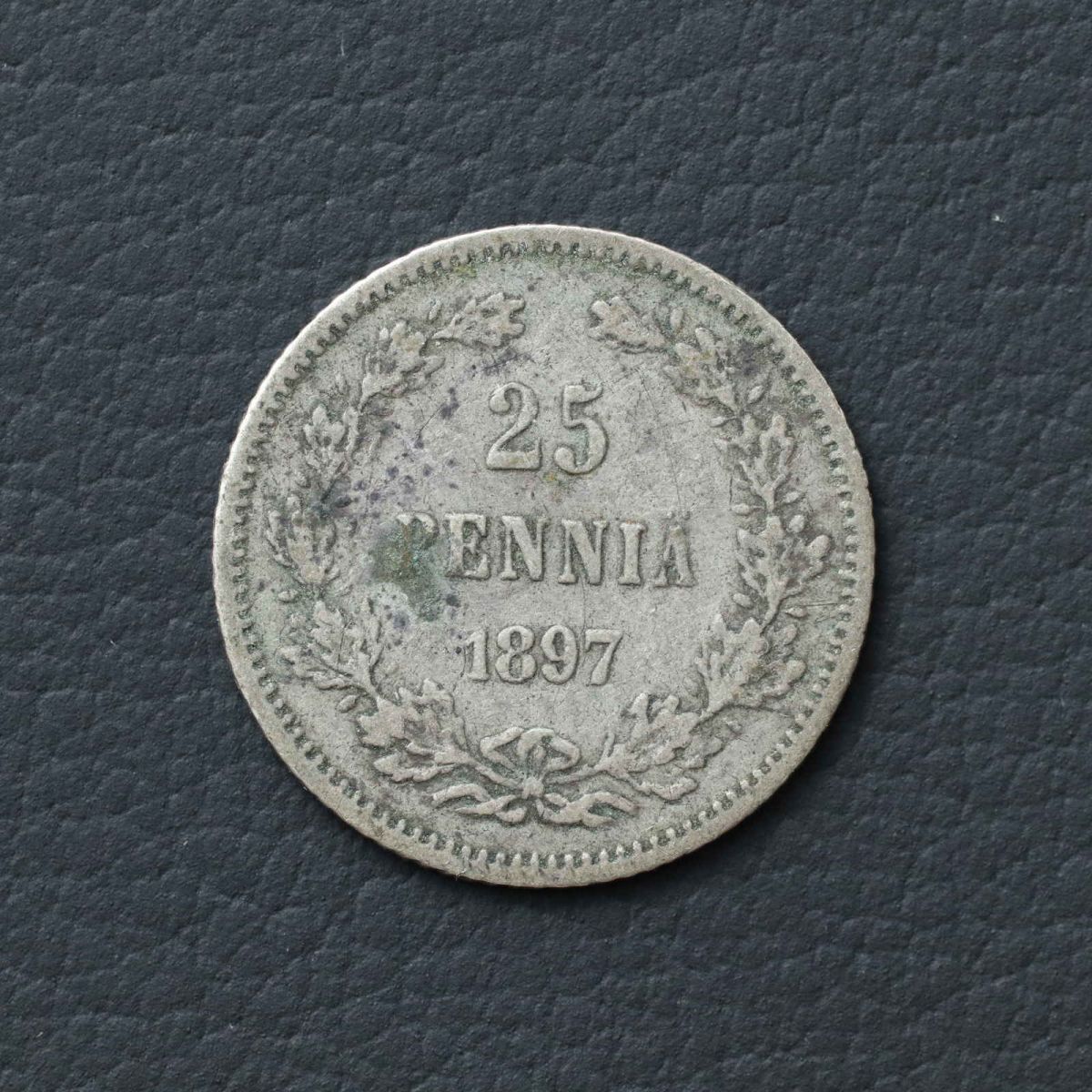 *[令]ロシア影響下フィンランド銀貨 25ペンニ(1897) 1.2747g 16.0mm コイン[E8502]7n5