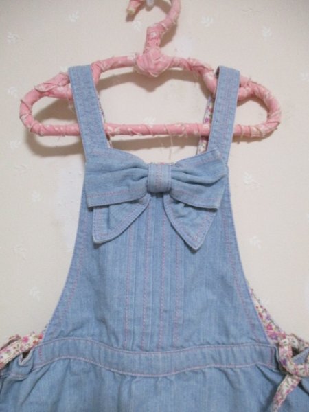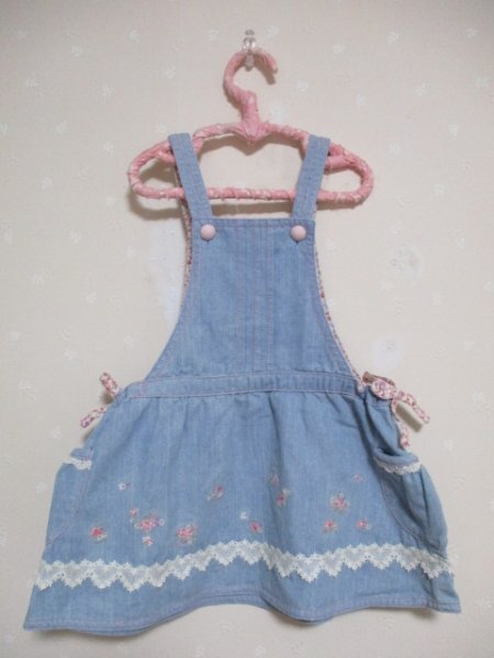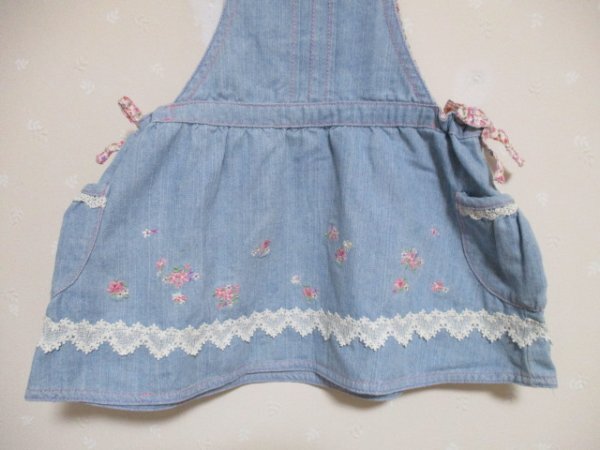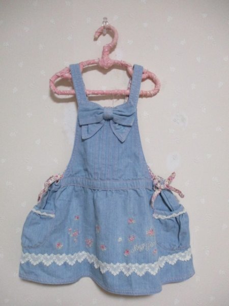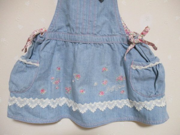 Ω メゾピアノ Ω ★ 可愛い刺繍とレース付きジャンスカ ★ 水色 100cm 50724 | |||