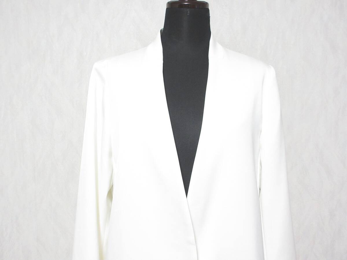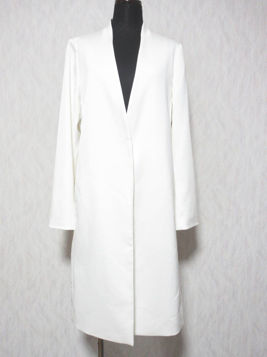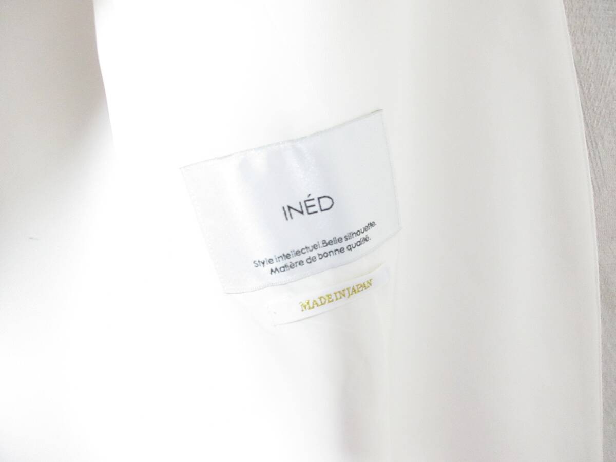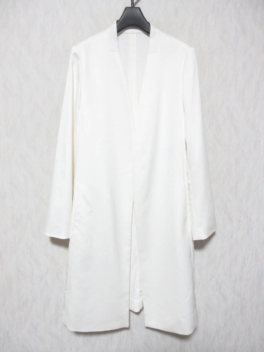 INED イネド ノーカラー ロングコート レディース 9 ホワイト 薄手 春  kn2540