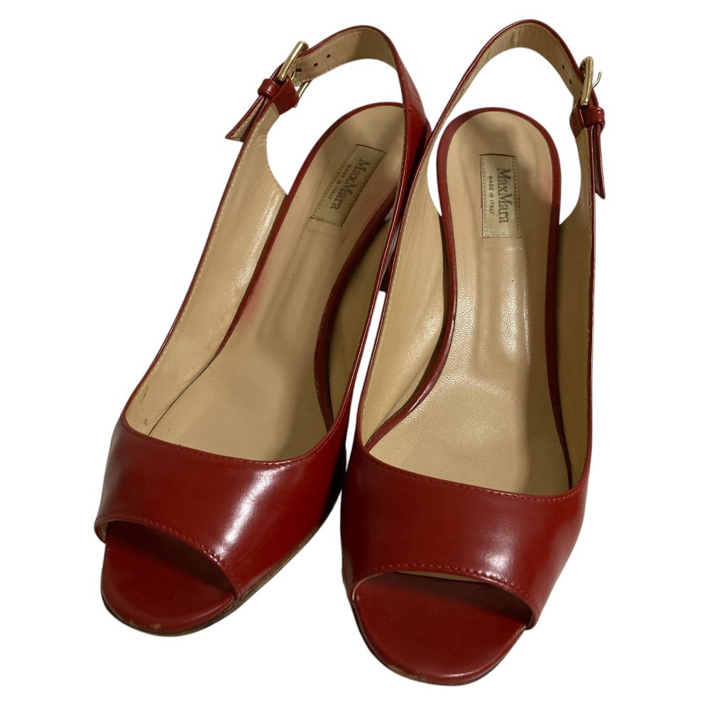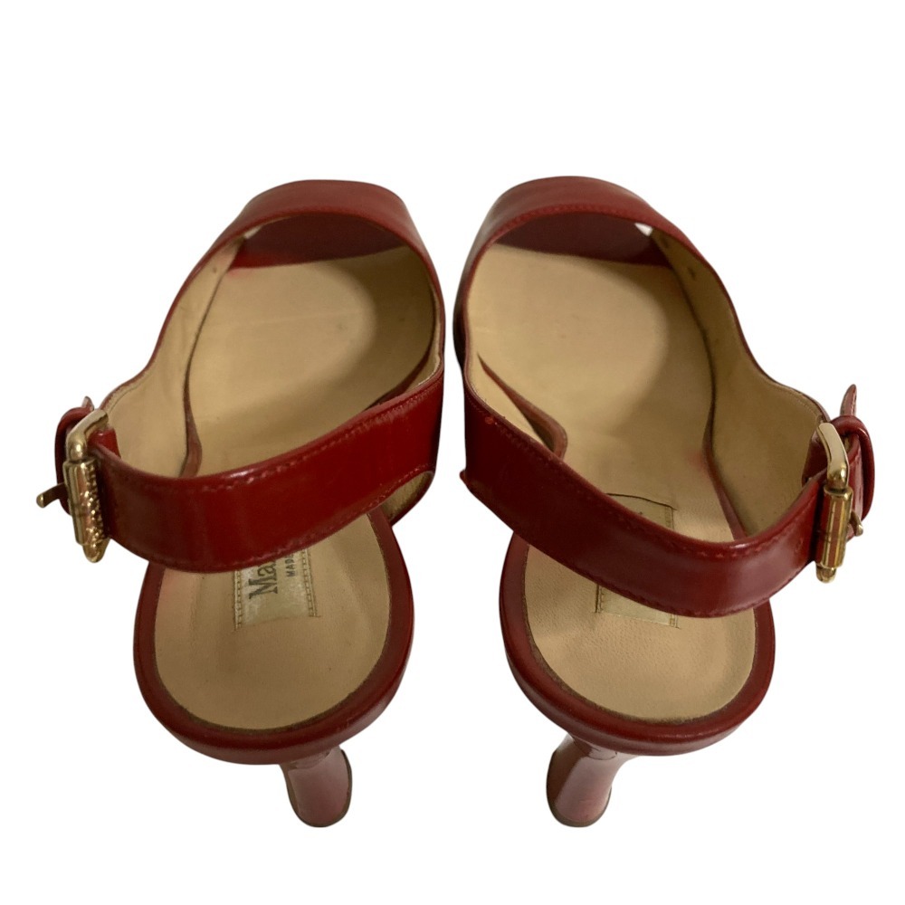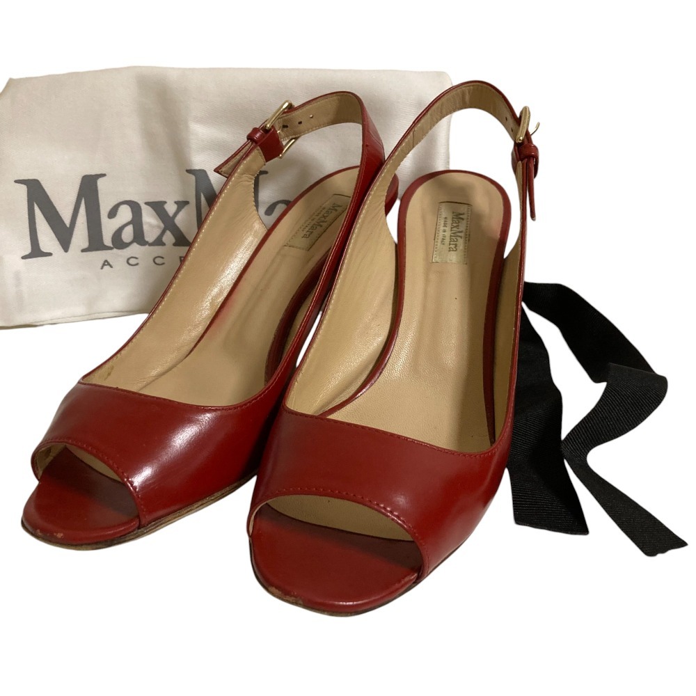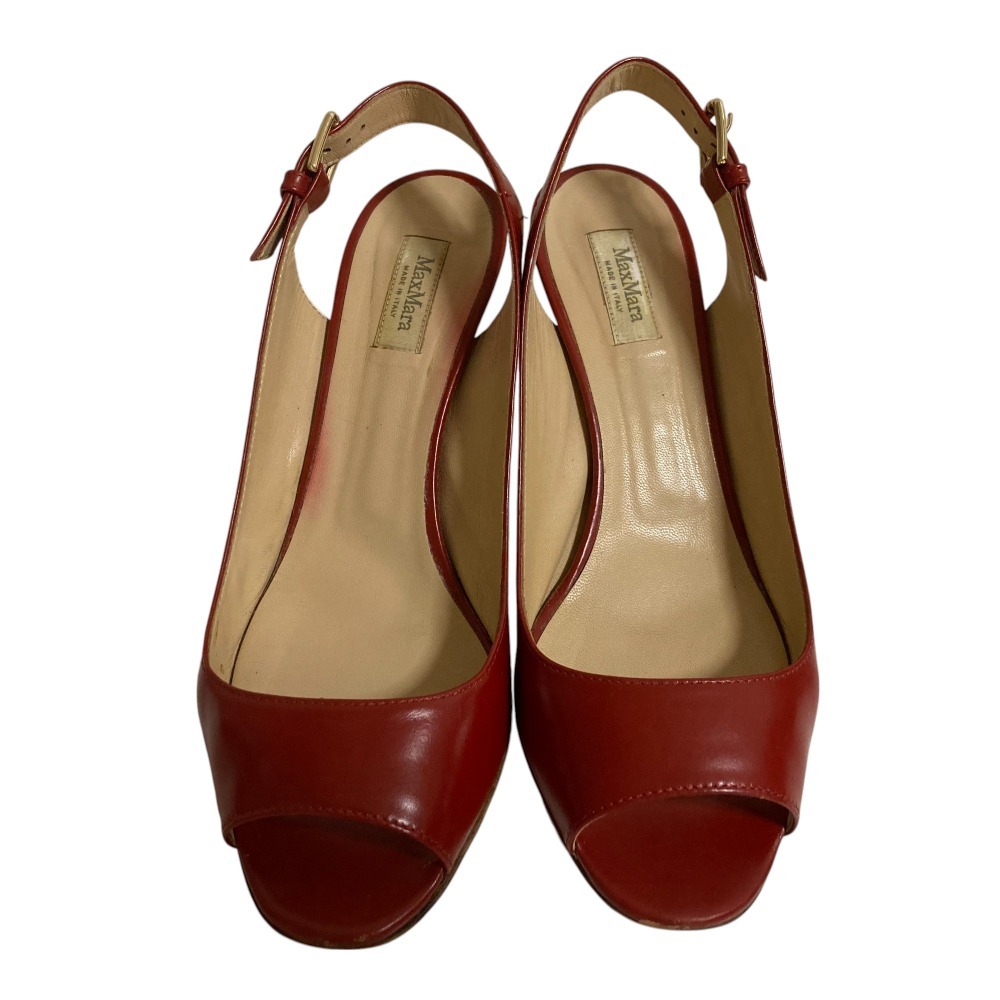 美品 Max Mara マックスマーラ オープントゥ スリングバック ハイヒール サンダル 37 約24cm レッド