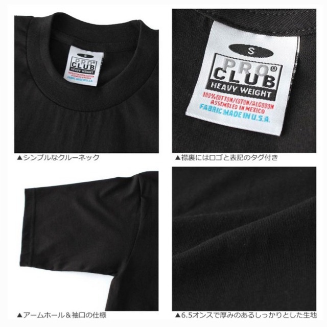 目の詰まったプロクラブのヘビーウエイト 半袖Tシャツ。