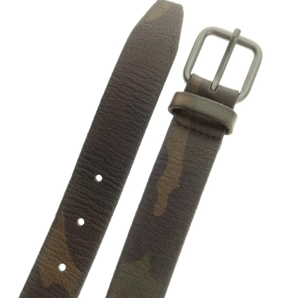 ナチュラルなシボ感のある肉厚なレザーを用いたベルトです。カモフラージュ柄の本体に、ガンメタ調のバックルが、ミリタリー感のある雰囲気に仕上がっています。コーディネートのちょっとしたアクセントにぴったりの一本です。