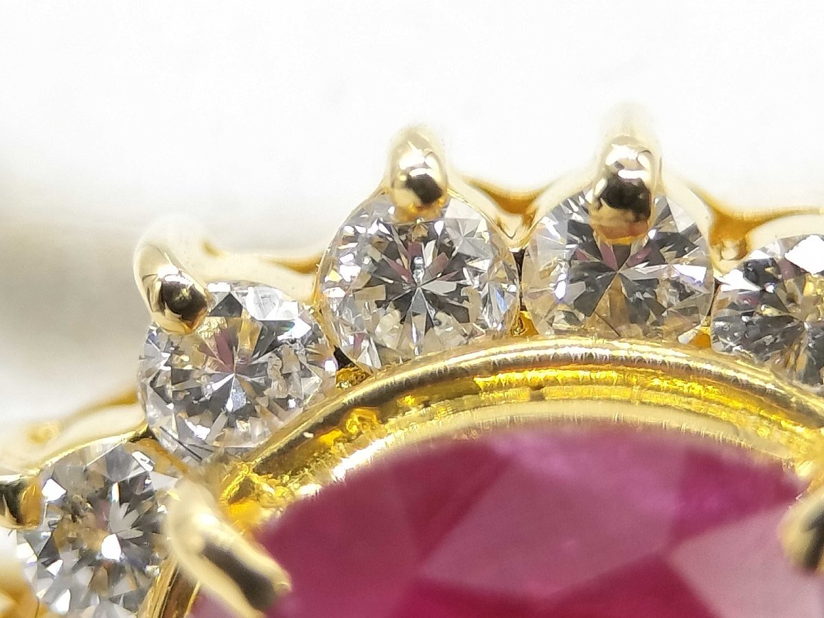 【注意事項】ルビー評価=【色】B【テリ】B【キズ】B【その他】面キズ/面カケあり. ダイヤ評価=A.