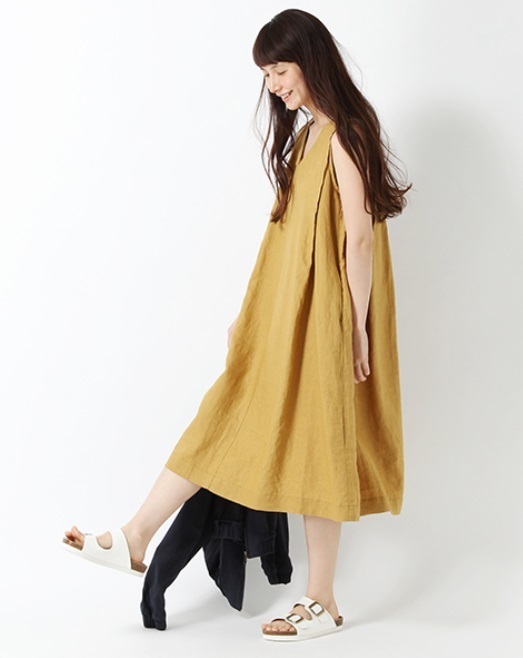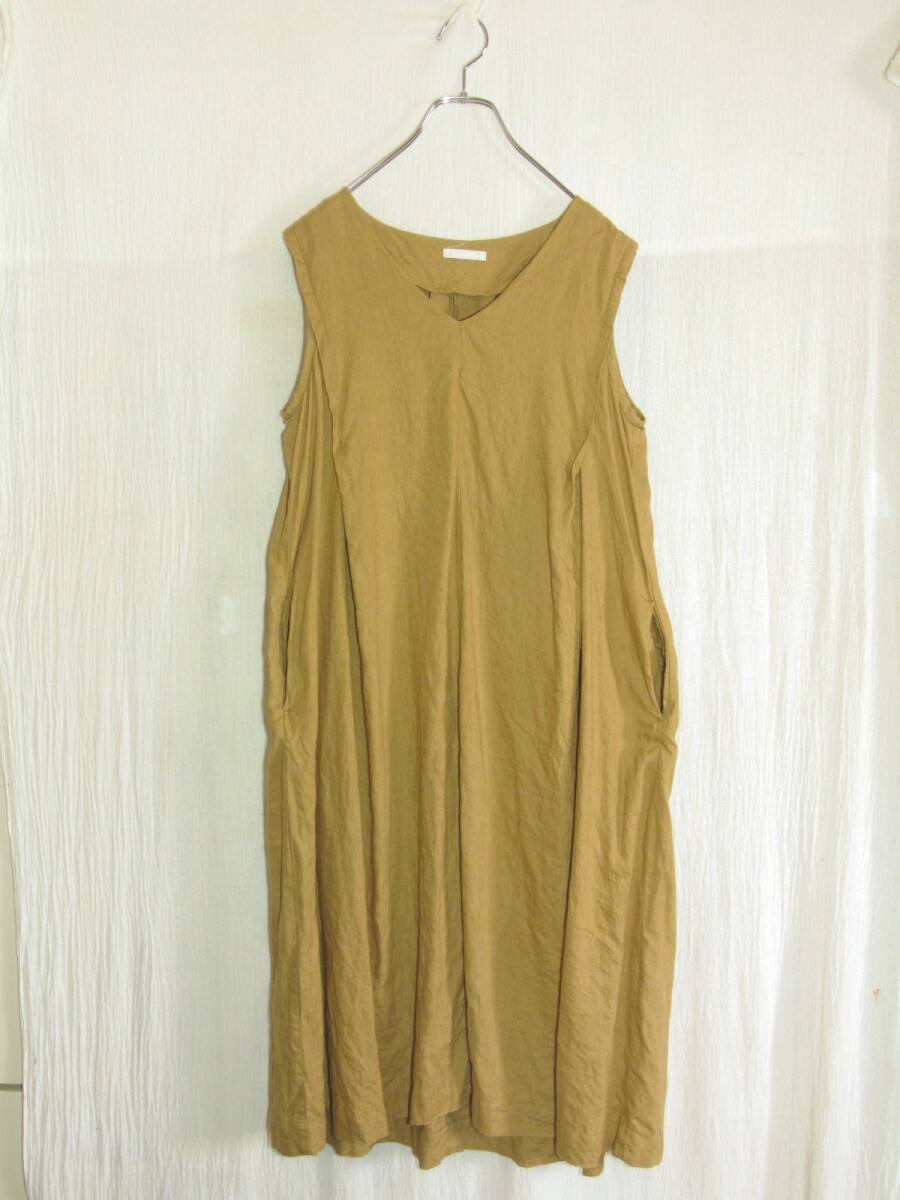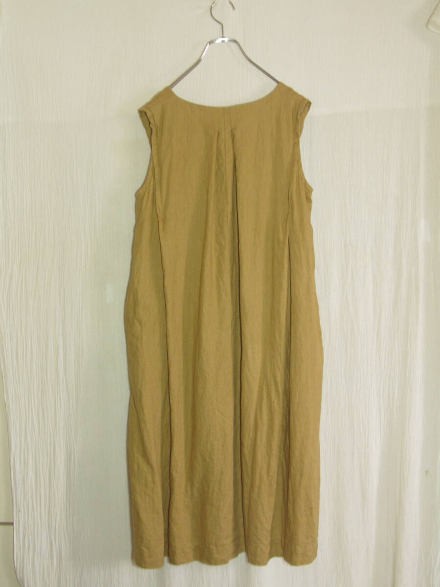 ★studio clip リネン100% ノースリーブタックワンピース*マスタード★