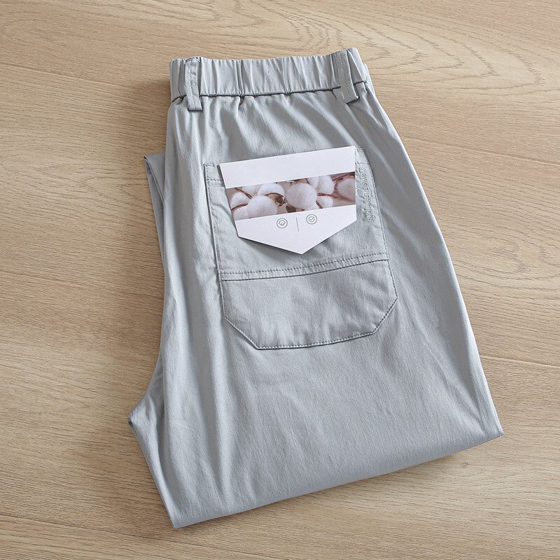 T3990-M 灰 新品 テンセル コットン サマー ロング パンツ イージーパンツ ゴムウエスト 薄手 メンズ 春夏 カジュアル アンクルパンツ