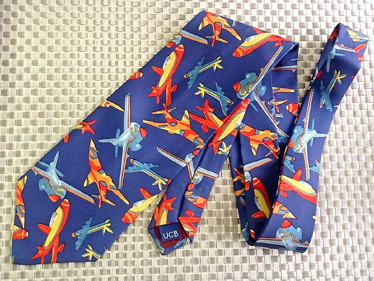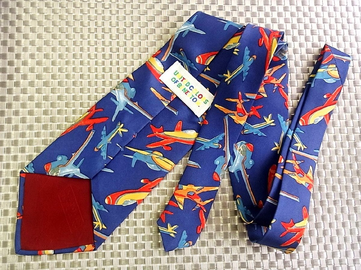 ★4420S★新品【飛行機 乗り物 柄】ベネトン【BENETTON】ネクタイ