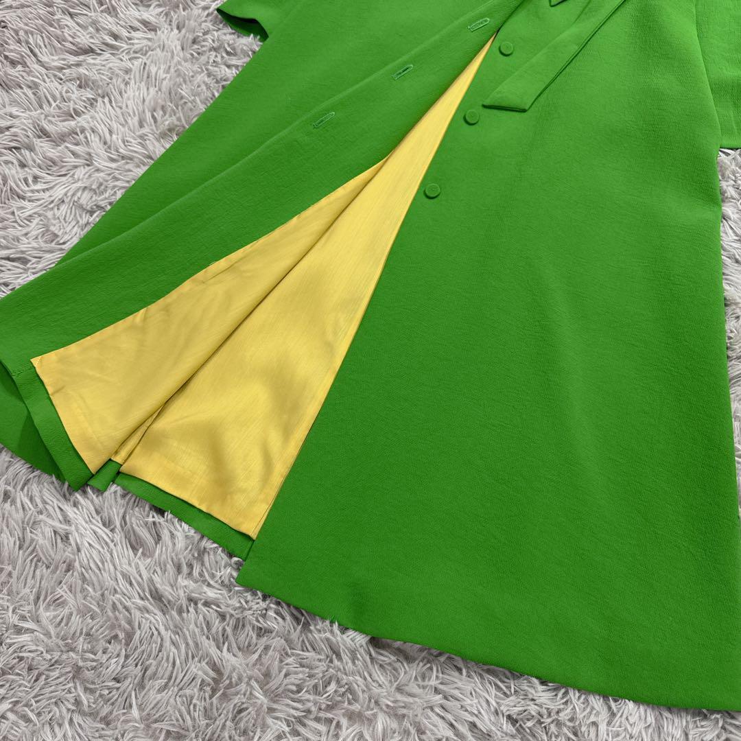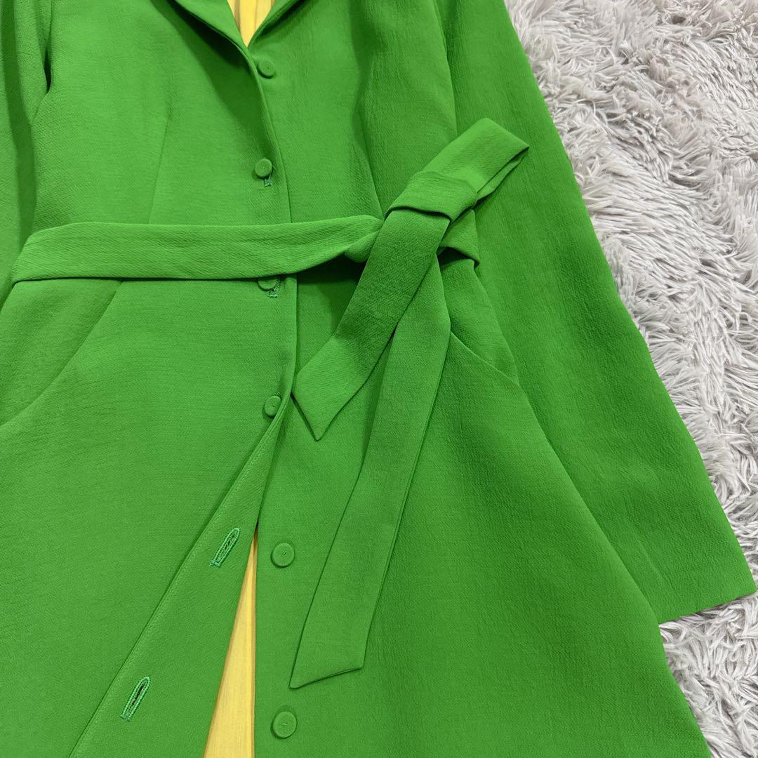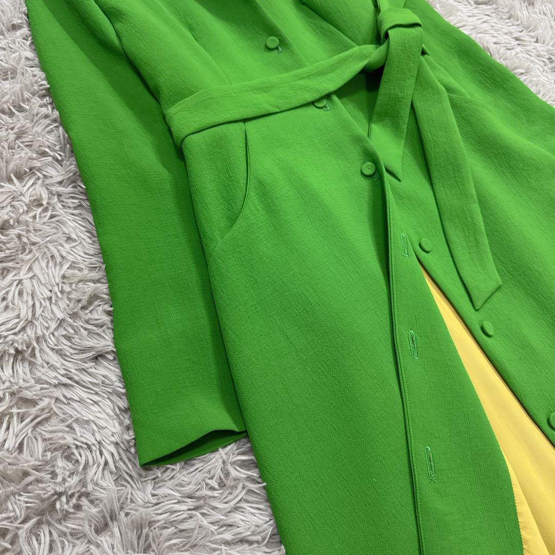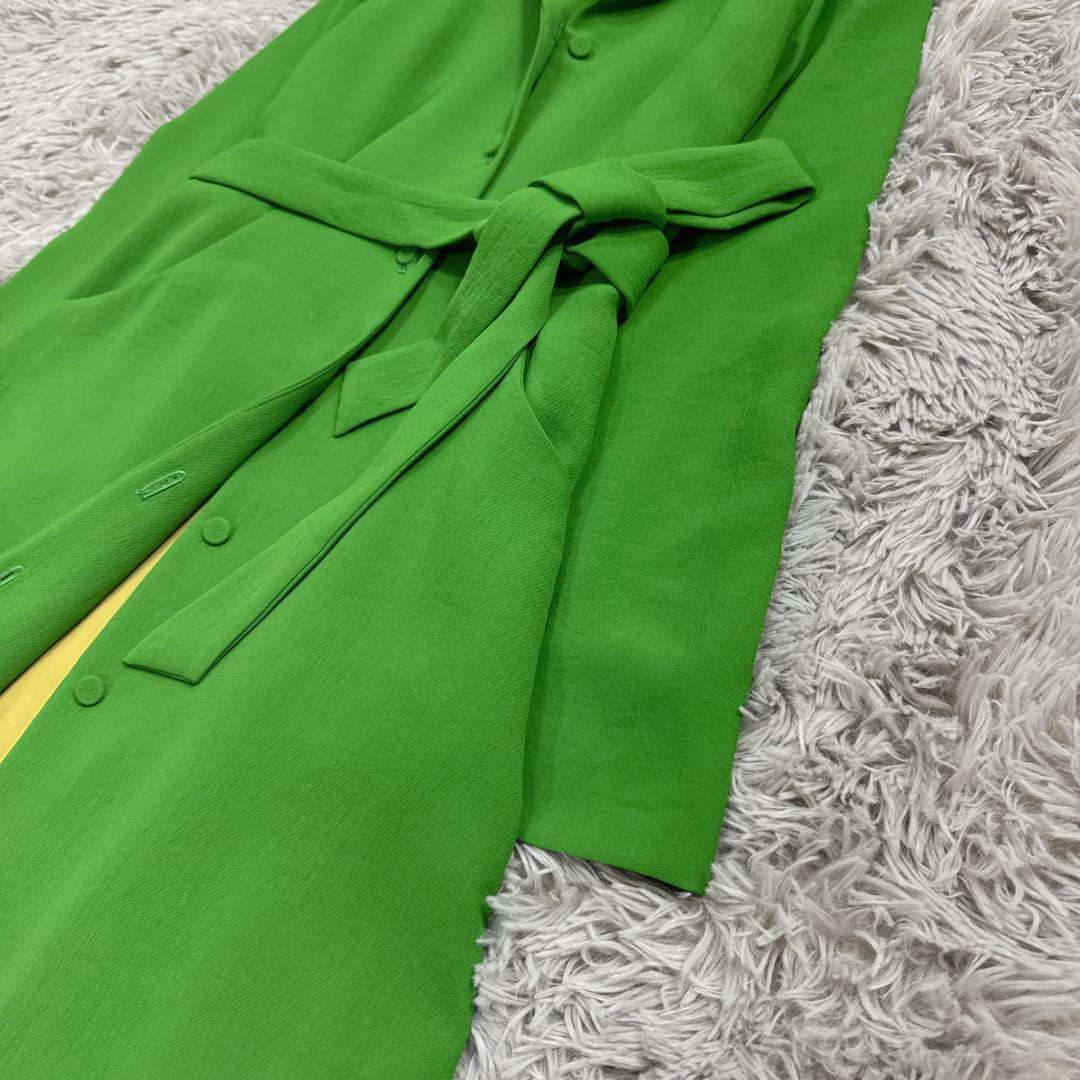 アウターとしてはもちろん、ボタンを留めてベルトを締めるとワンピースとしても着用可能なマルチアイテムです。