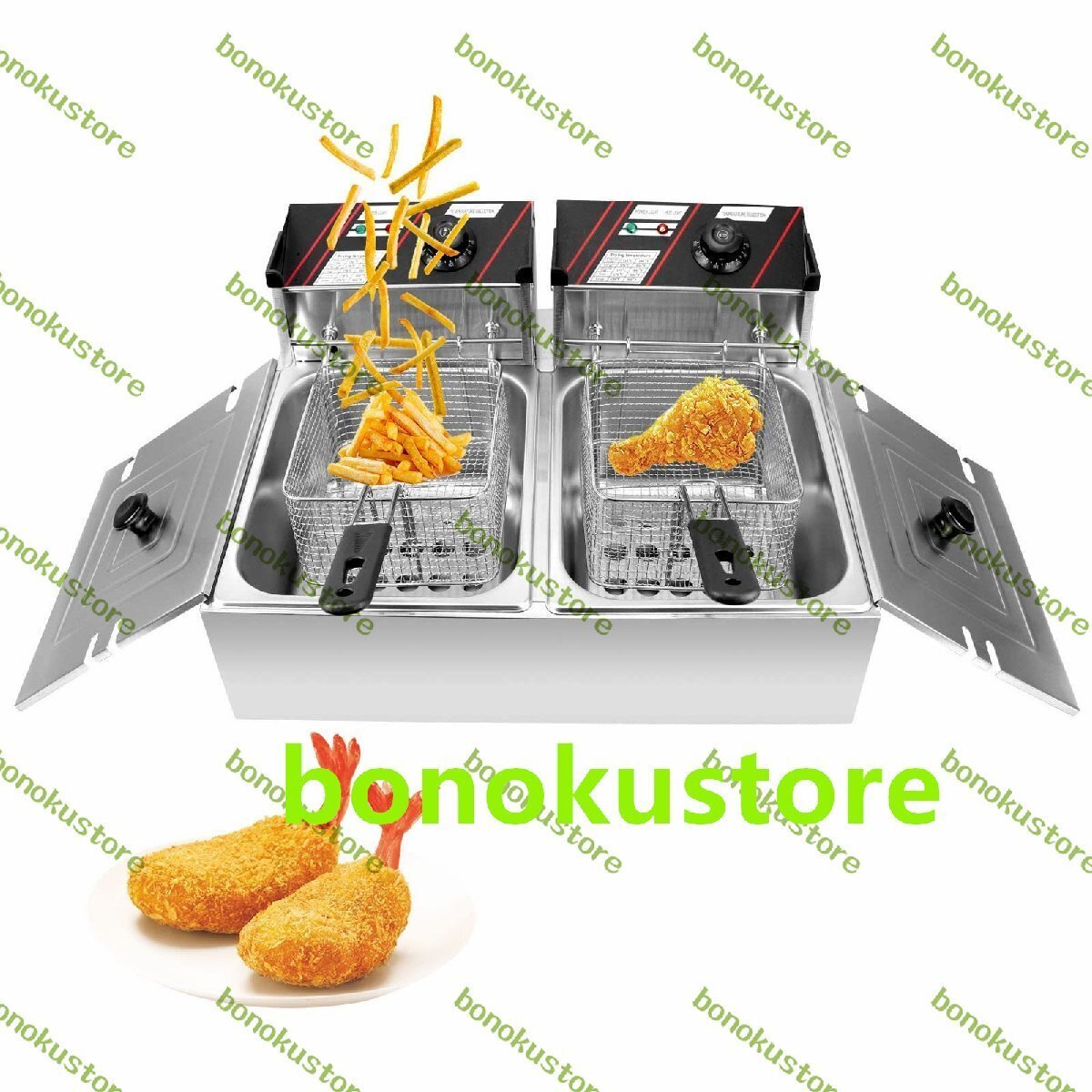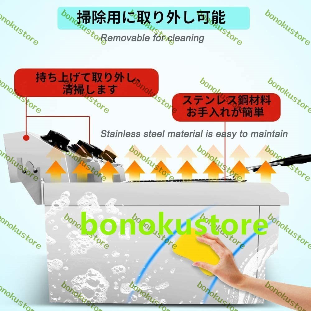 商品の説明 ★この2500W + 2500Wの二槽式電動フライヤーはステンレス構造を採用しています。レストラン、スーパーマーケット、ファーストフードレストラン、スナックバーなどの商業住宅向けに特別に設計されています。この大容量の6L + 6Lの天ぷら鍋を使って、毎回あなたの名
