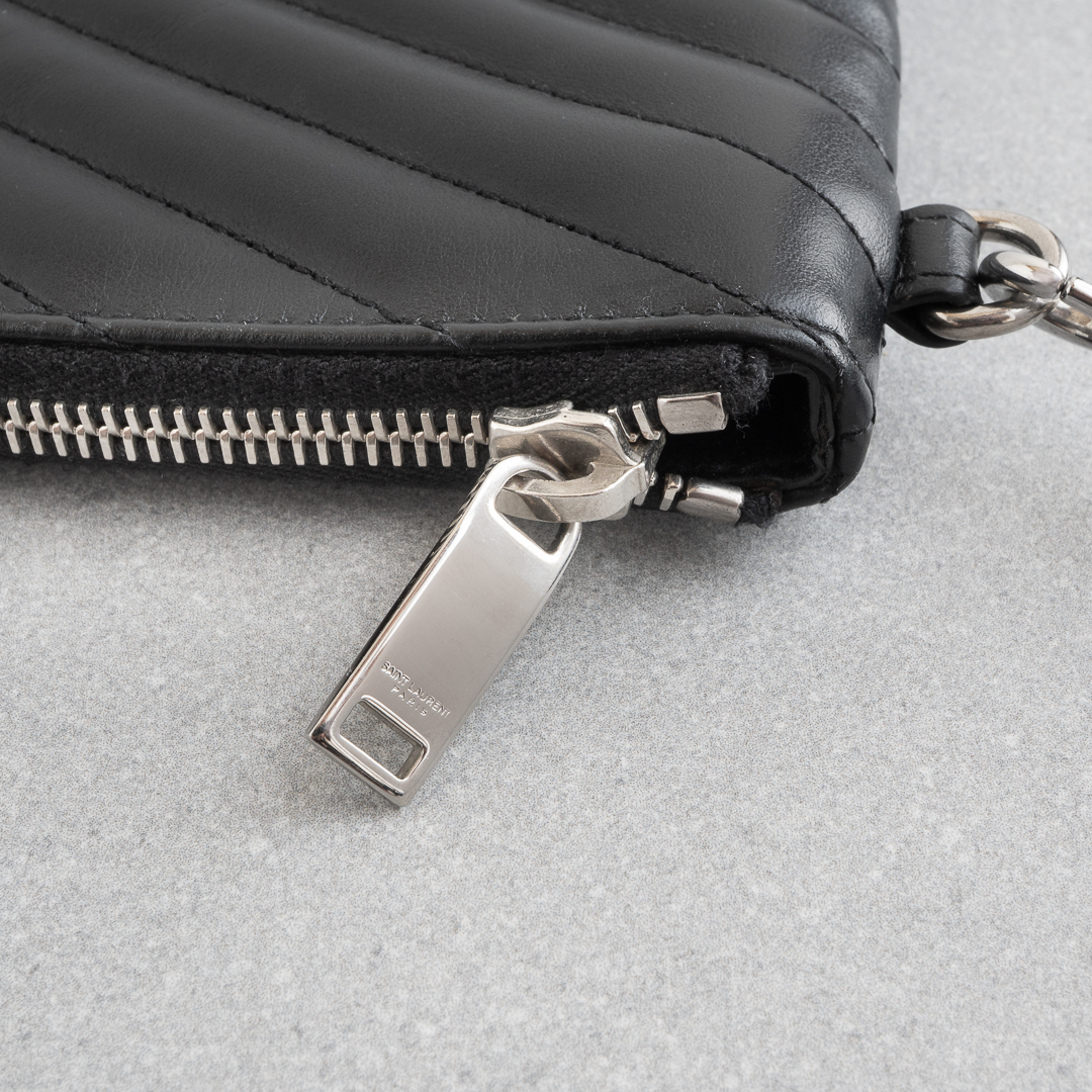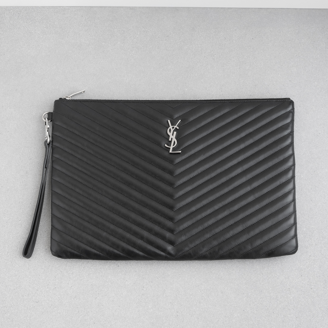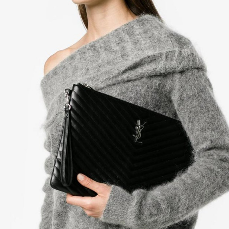 美しいキルティングにサンローランらしいモードが光るクラッチバッグ。
