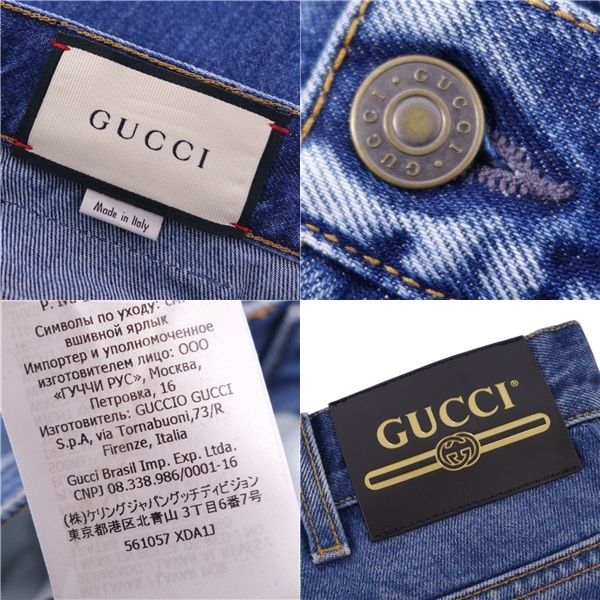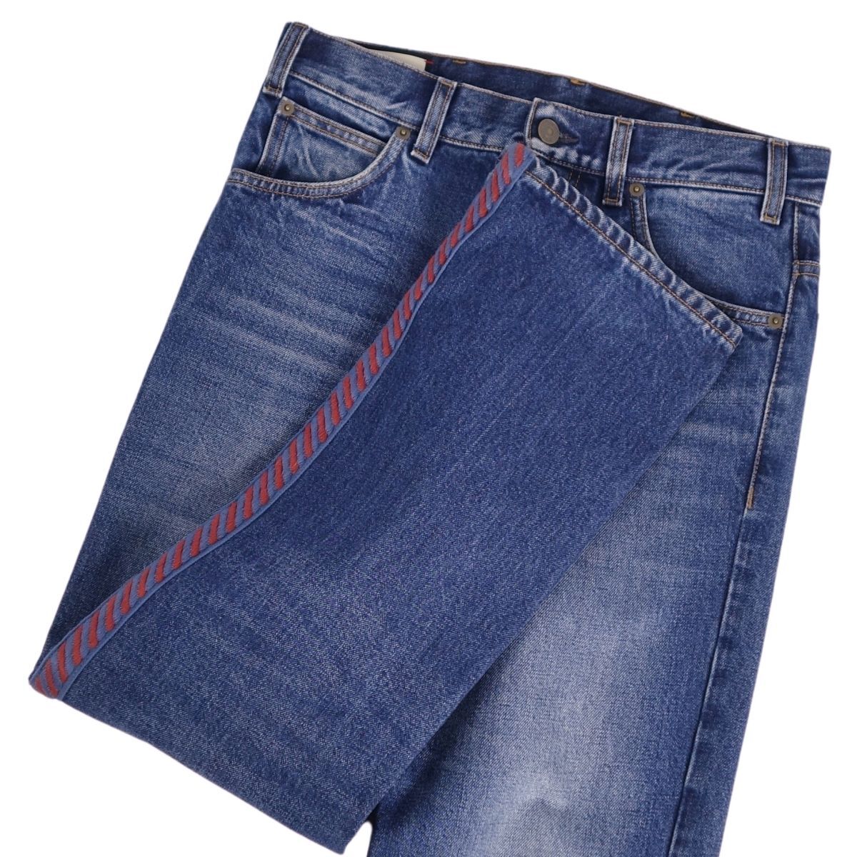 美品 グッチ GUCCI パンツ デニムパンツ サイドライン コットン ボトムス メンズ イタリア製 28 インディゴブルー |