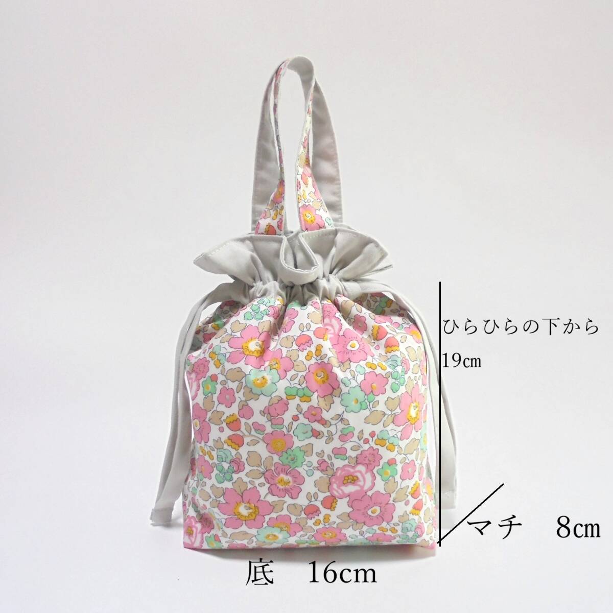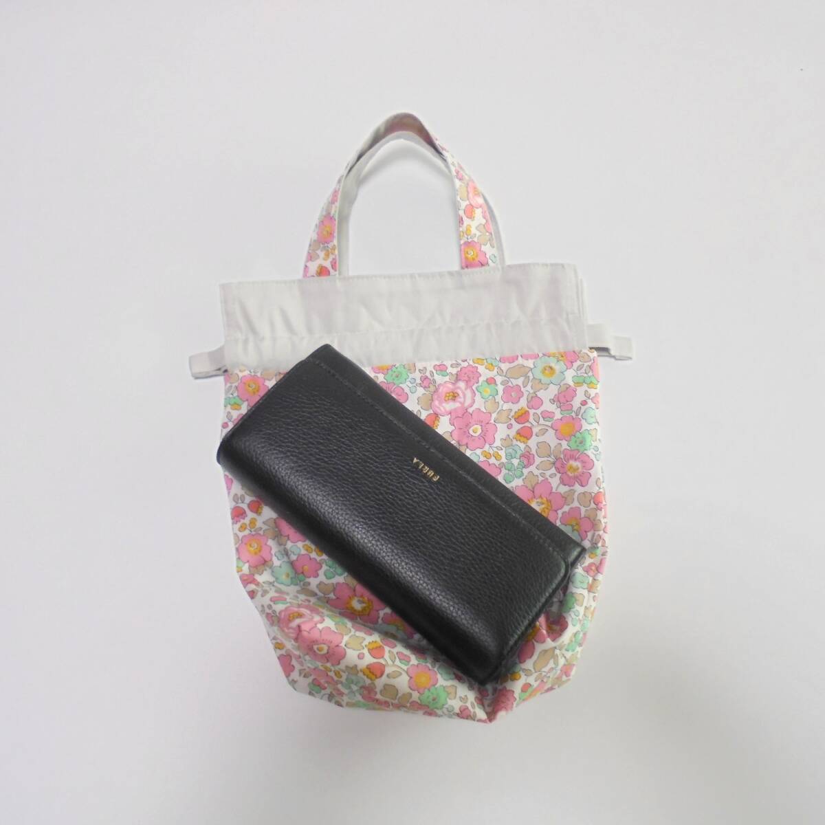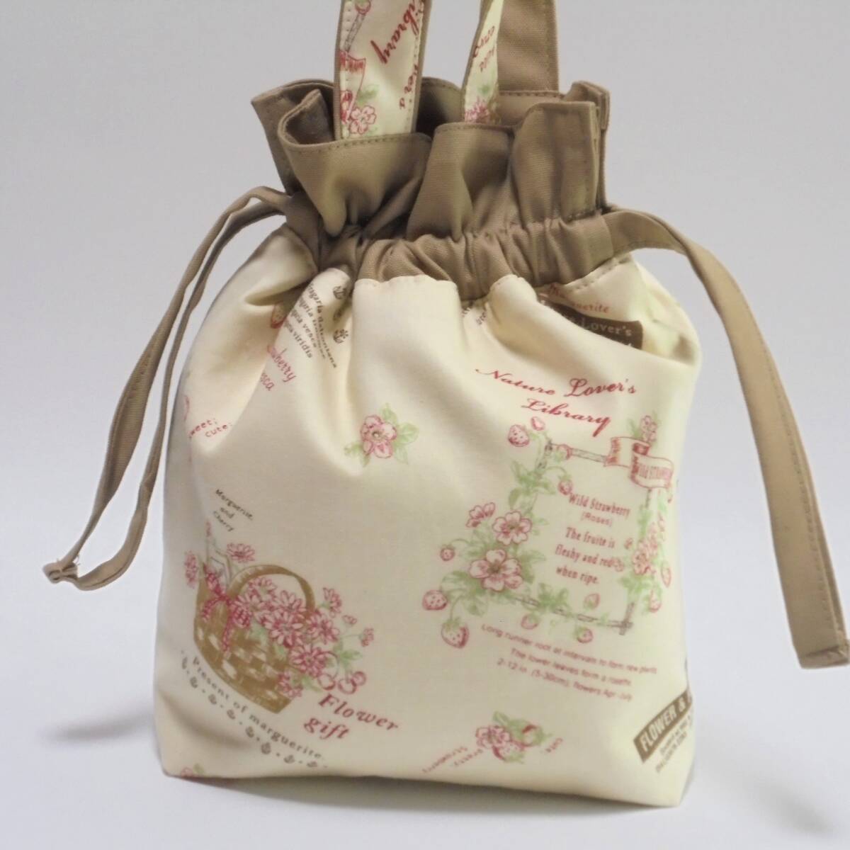松山敦子さん生地ストロベリーとカフェオレの巾着バッグ