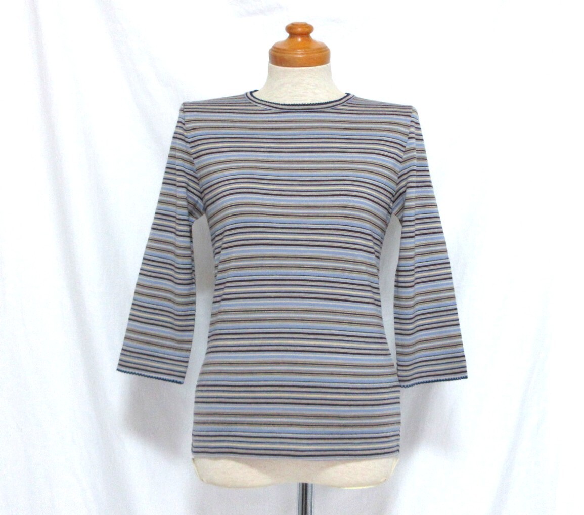 ブルーとグレーの落ち着いたトーンのボーダー柄が | ||
