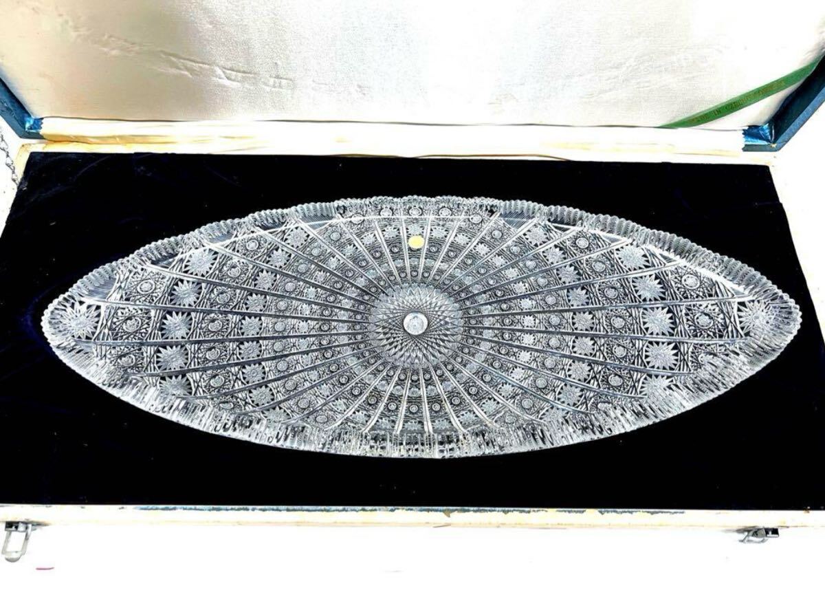 旧チェコスロバキアのボヘミア地方でハンドメイドされた、高級クリスタルプレートです。