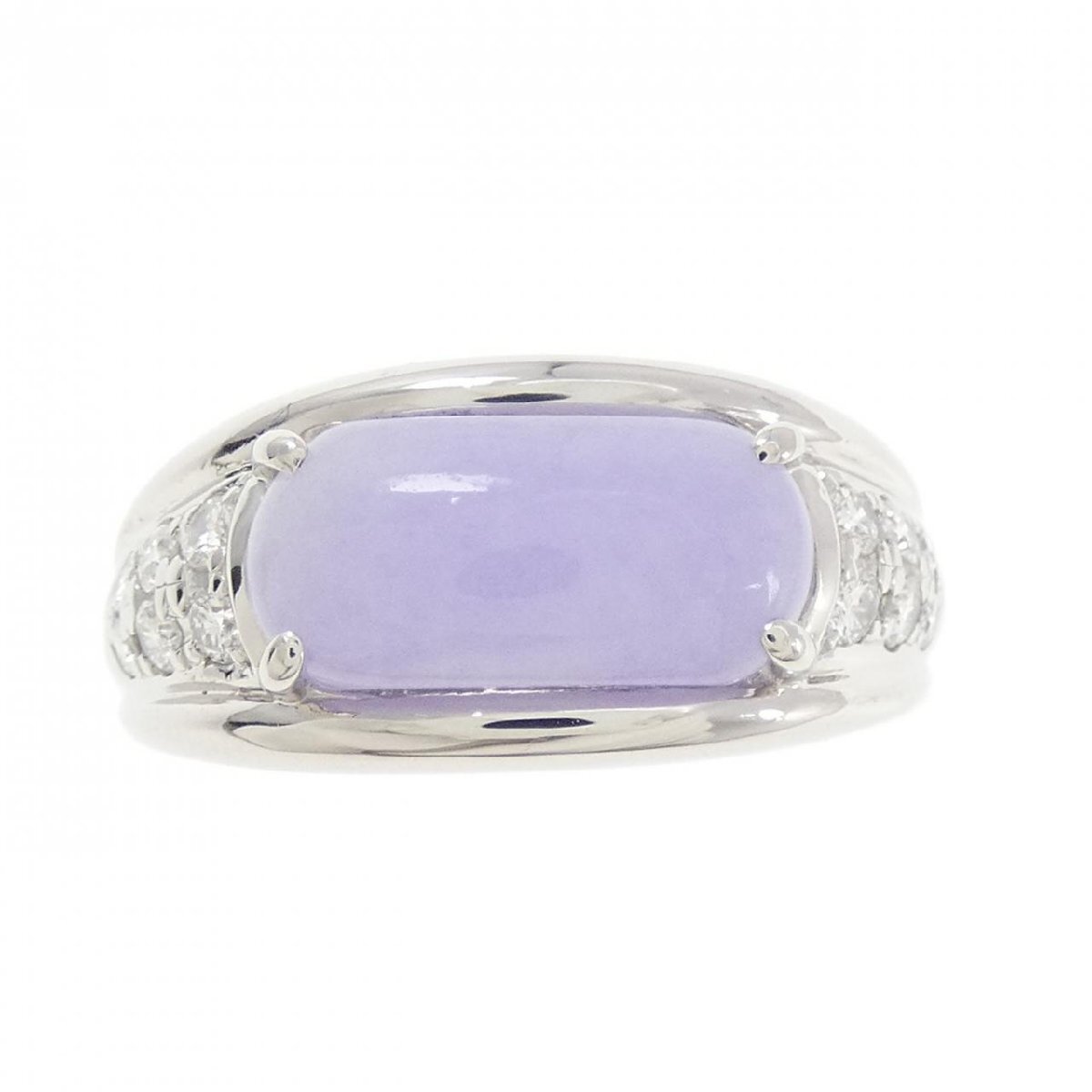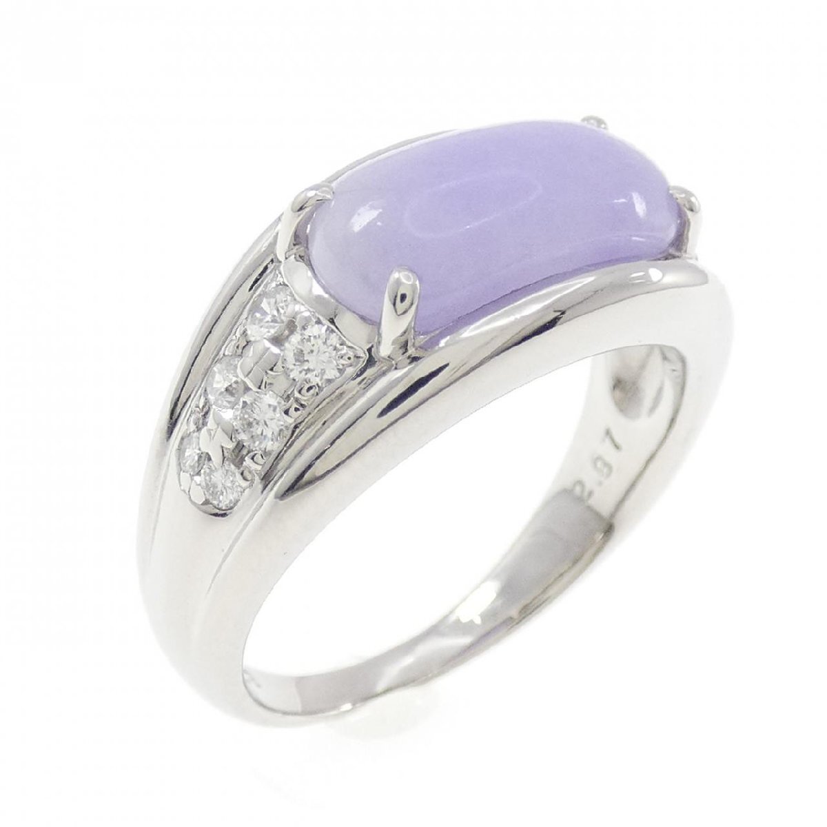 艶のあるラベンダーヒスイのリング。サイドのダイヤモンドが輝きをプラスします。