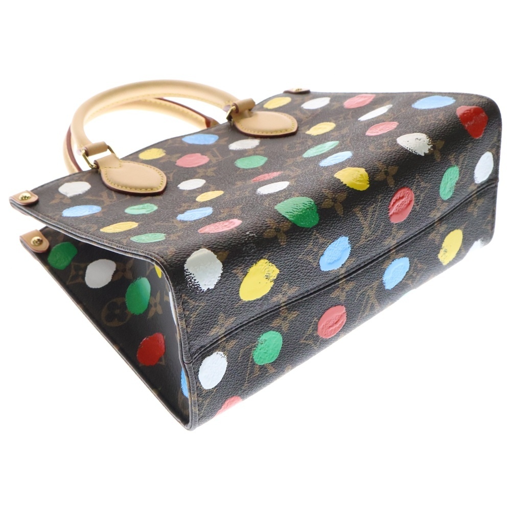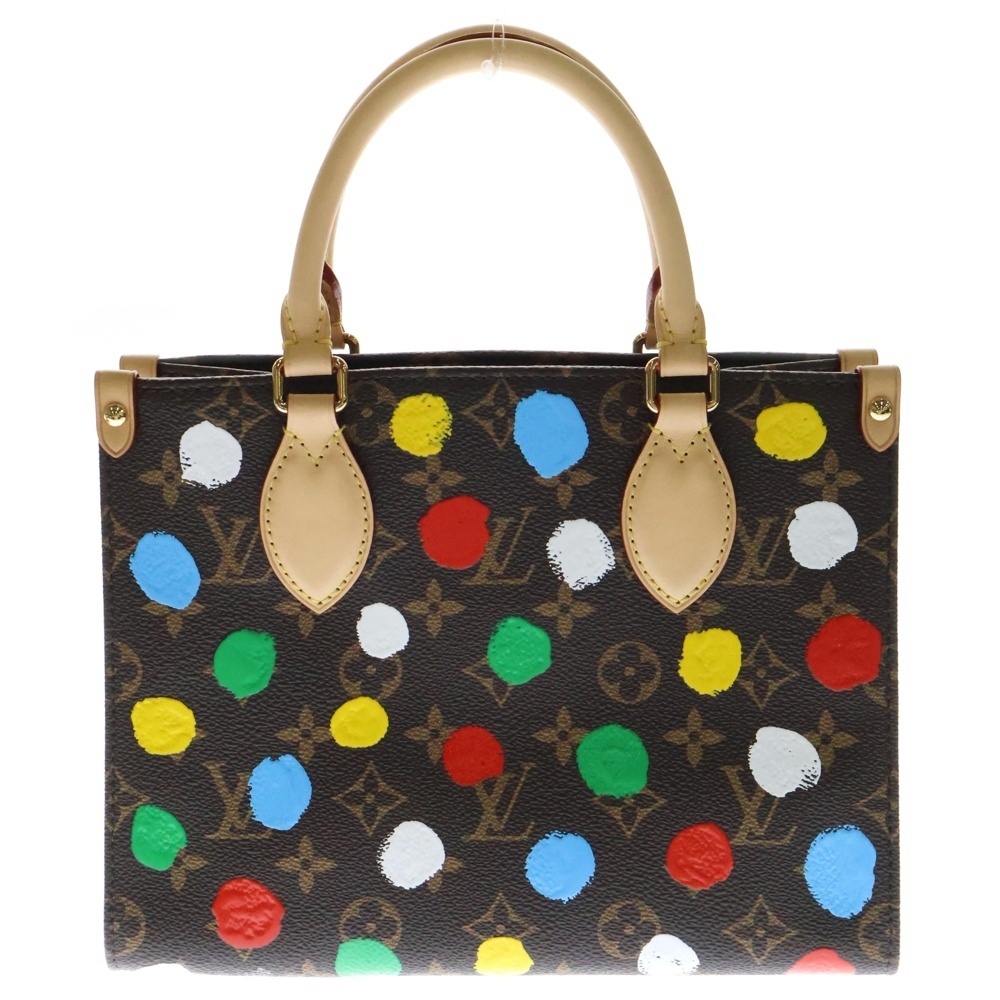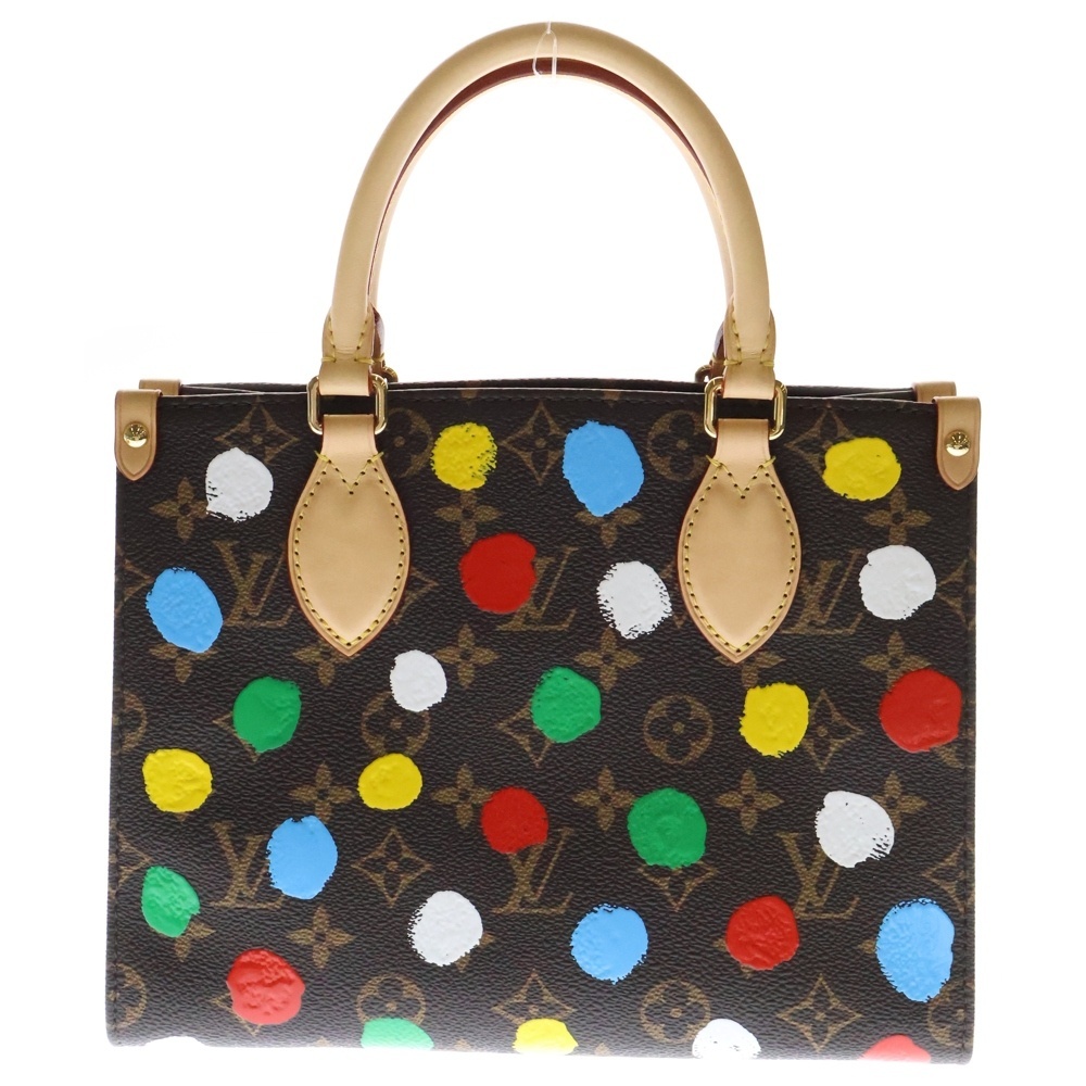ルイヴィトン 23SS ×YK OnThe Go PM Leather Handbag M46380 ×草間彌生 オンザゴー PM モノグラムレザー2WAYハンドバッグ ブラウン