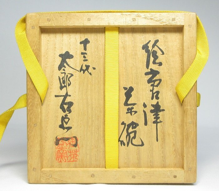 【B0214a】茶道具 唐津焼 十三代 中里太郎右衛門窯 絵唐津 茶碗 共箱 栞付き