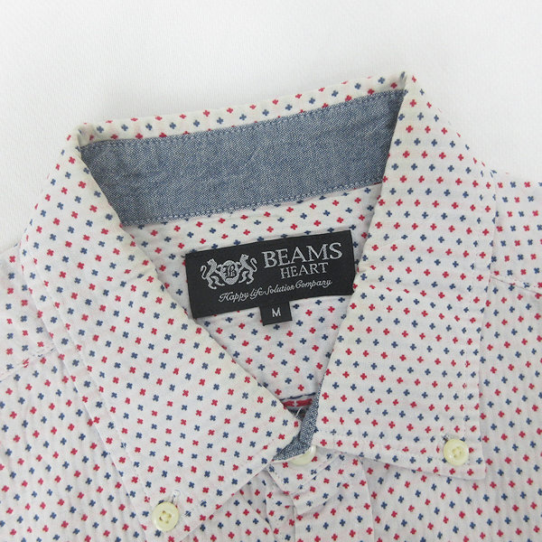D■ビームス/BEAMS 総柄 半袖ボタンダウンシャツ【M】赤紺白/MENS/128【中古】