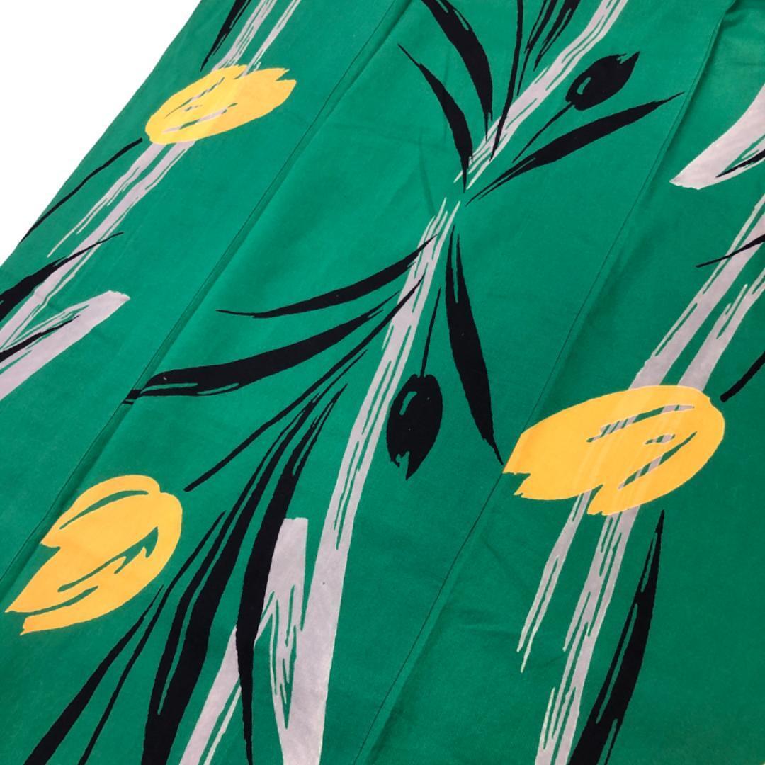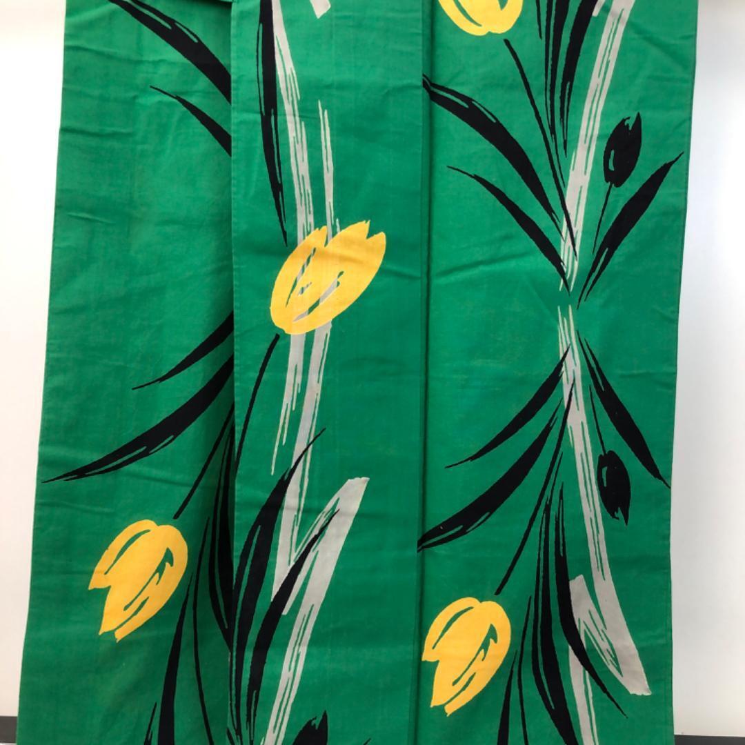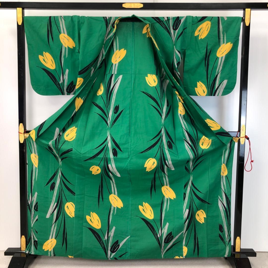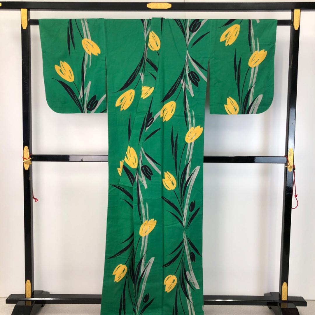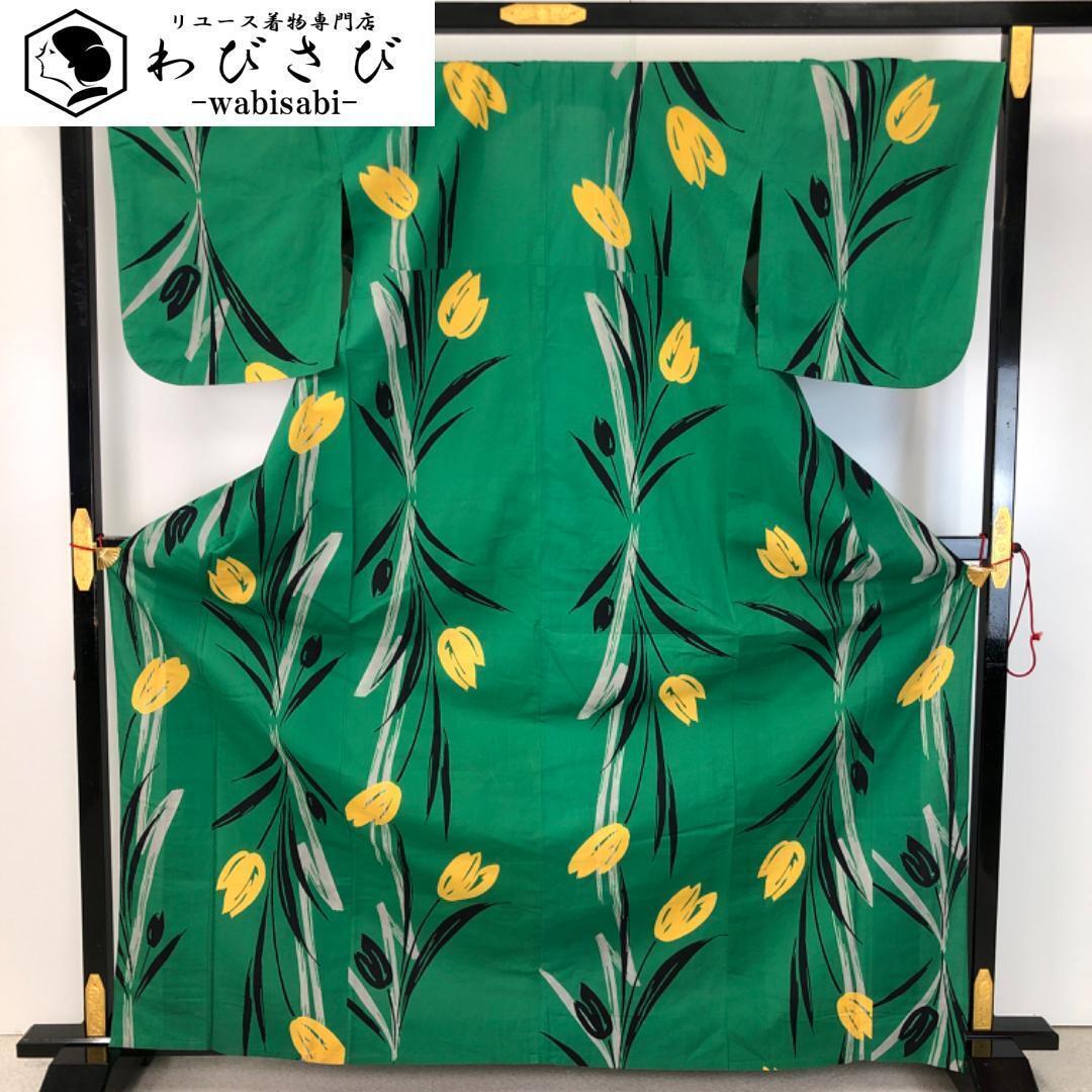 夏着物 浴衣 チューリップ 緑色 トールサイズ K-5132 着物 きもの kimono 和服 和装 中古 リサイクル着物 【送料無料】