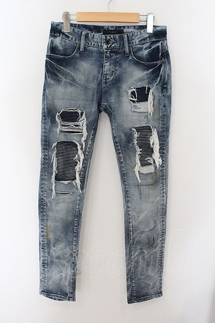 | ダメージ拡張、品質タグダメージ、保管臭/-/ダメージ&リメイク加工 + こげ茶汚し加工 定価¥20,680- Y2K/ CV19-C21 リサイクル品の為、記載の無い若干のシミ・汚れ等がある場合がございます。あらかじめご了承の上ご注文ください。詳細はこちら | ||||||||||||||||||