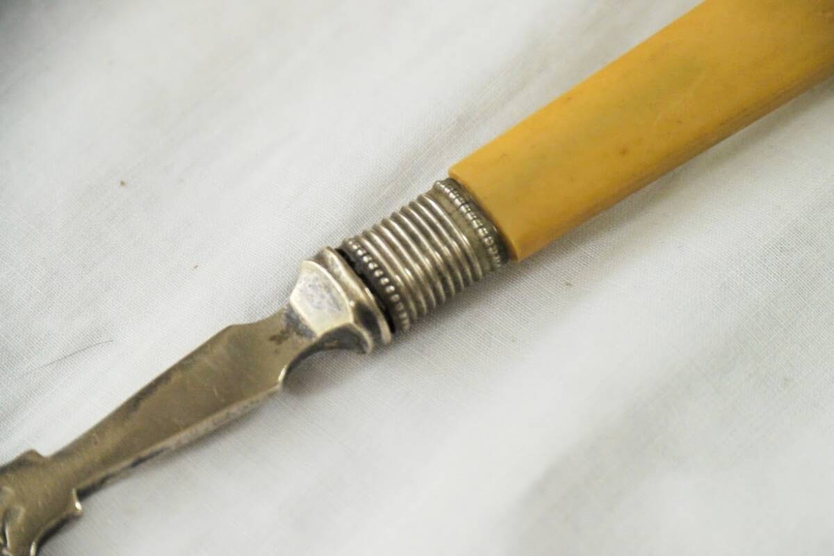 | 商品説明 | 閲覧ありがとうございます。 イギリスで売られていたシルバープレート製のフォークを出品します。ハンドル部分は牛の骨などを加工して作られたもののようです。先端部分に綺麗な装飾もあしらわれています。 ・寸法 長さ 約18.8cm ・コンディション ところどころ細かな傷や変色が見られます。 アンティーク/ヴィンテージ/中古品ですので小さな傷や劣化、変色等をご考慮し掲載画像をよくご覧になった上で入札を検討してください。 できるだけ商品の状態をわかりやすく撮影しているつもりではありますが、写真からイメージされたものと手元に届いた実際の商品との印象が異なる可能性は完全には排除できません。何卒、ご考慮ください。 |