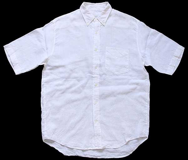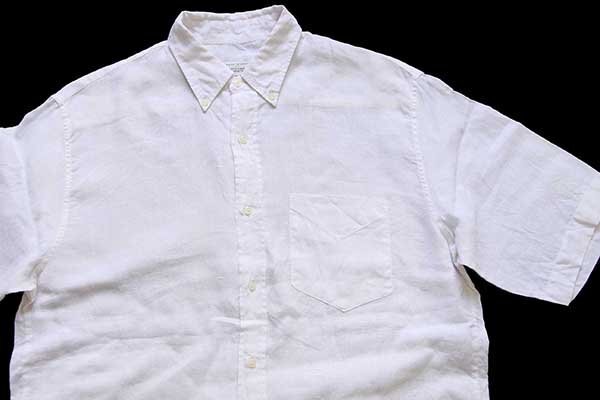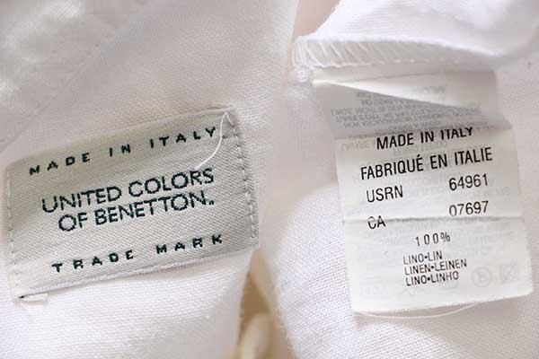 ★90s イタリア製 BENETTONベネトン 無地 ボタンダウン 半袖 リネンシャツ 白 L★オールド ビンテージ ユーロ ホワイト オーバーサイズ