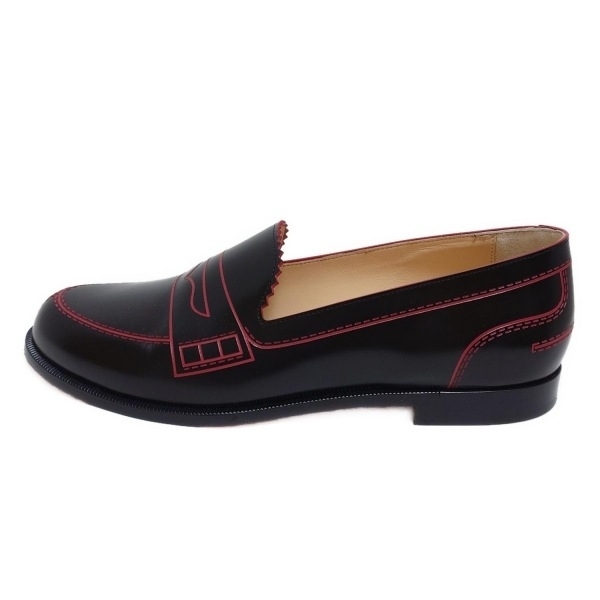 クリスチャンルブタン CHRISTIAN LOUBOUTIN ローファー 36 1/2 - レザー 黒×レッド レディース ダミープリント 靴