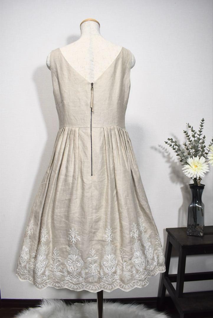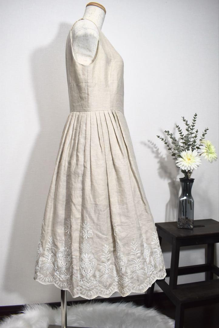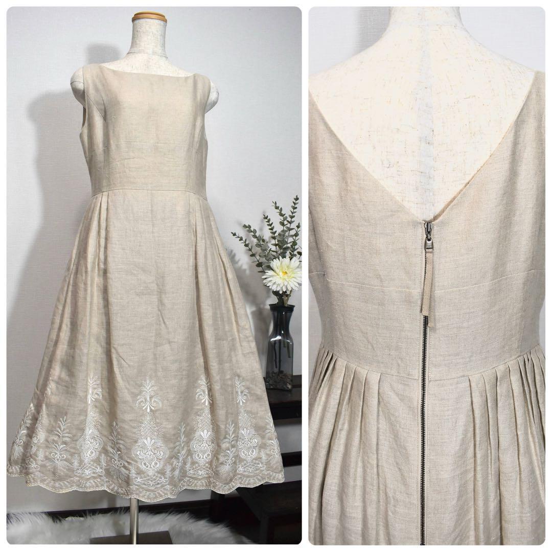 美品!フォクシーブティックリネンコットンレースワンピース 後ろファスナー サイドタックプリーツワンピース