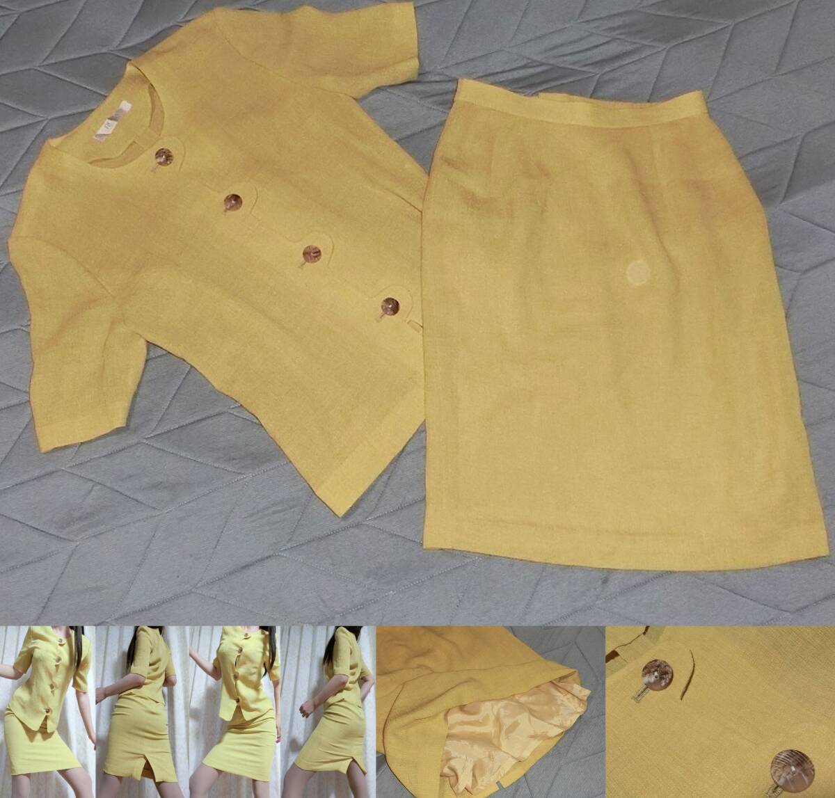 d11★清楚美人系★薄い黄色 セットアップ 2Pスーツ★バックスリット