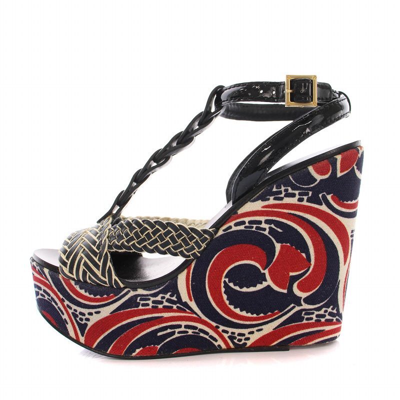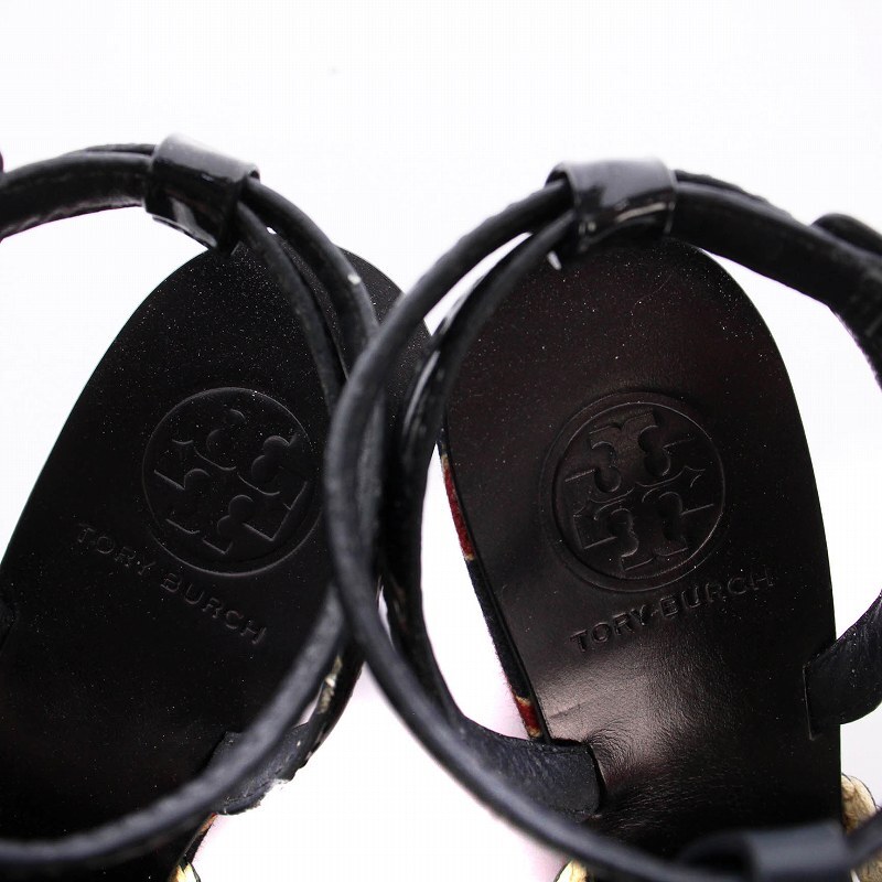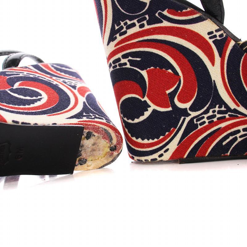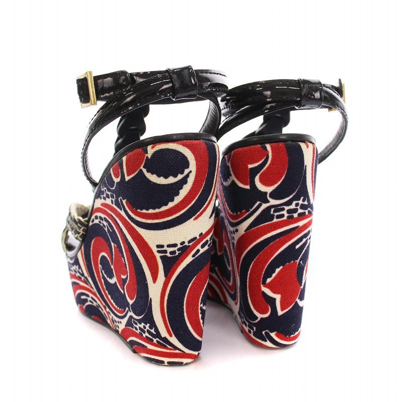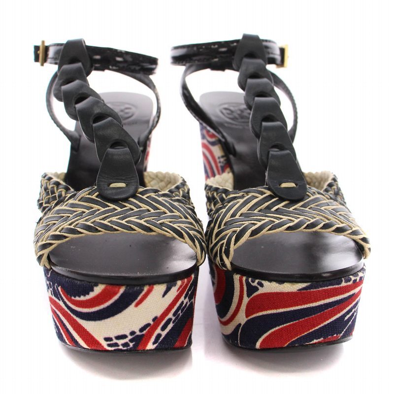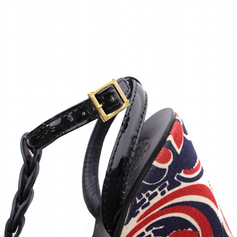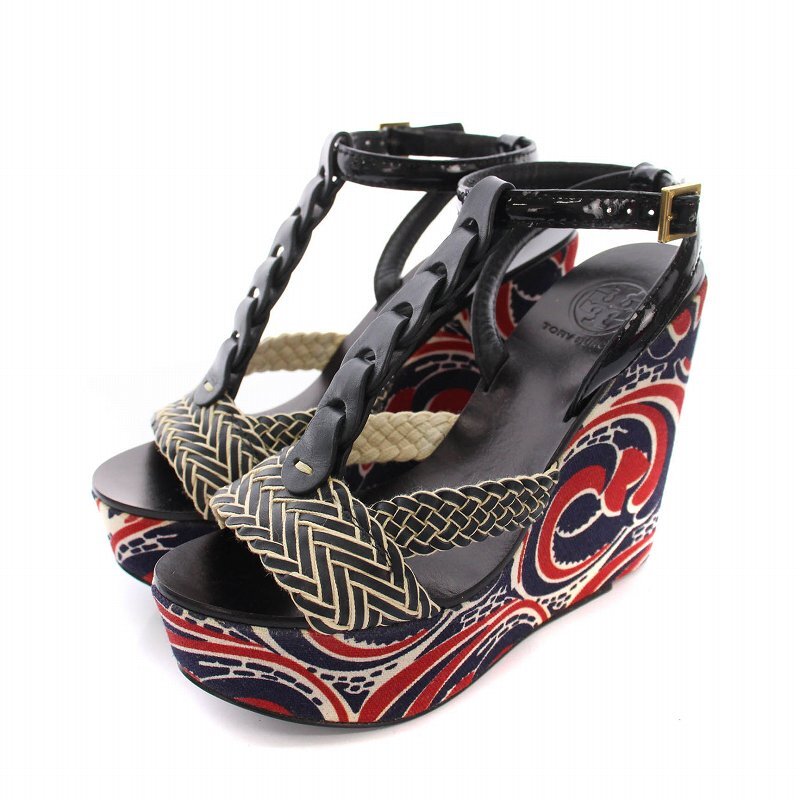 トリーバーチ TORY BURCH サンダル ウェッジソール 総柄 アンクルストラップ 6M 紺 赤 /YM レディース