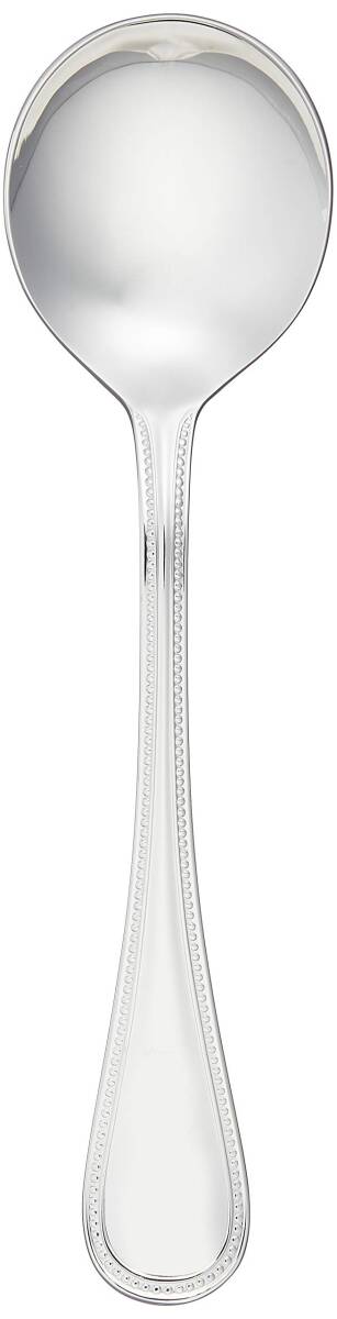 繊細なパール模様で縁どりされた優美なデザインです。 一見単純に見えるかもしれませんが、ひとつひとつのパールは精緻な彫金の技法を駆使して仕上げられていて他に例を見ない美しさです。 最良の日のテーブルにふさわしい逸品です。