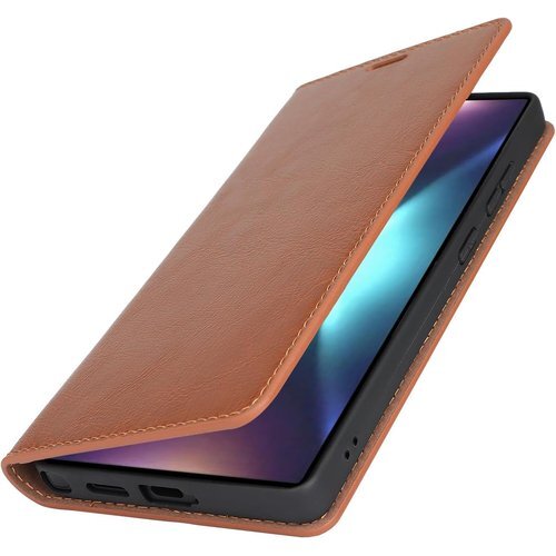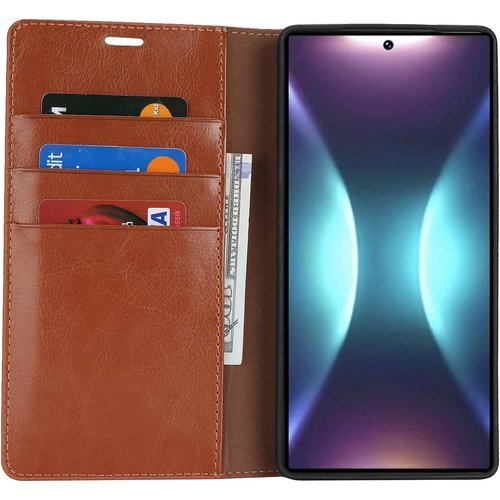 Galaxy S25 Ultra ケース 手帳型 マグ 沢加工 牛革 レザー 財布型 カード入れ ライトブラウン 3849