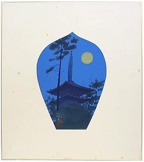 e3722 真作保証 木版画 平山郁夫 「薬師寺夏の塔」 色紙絵 額縁