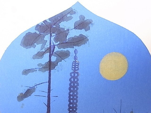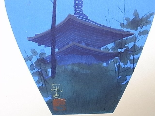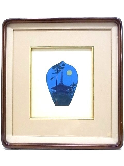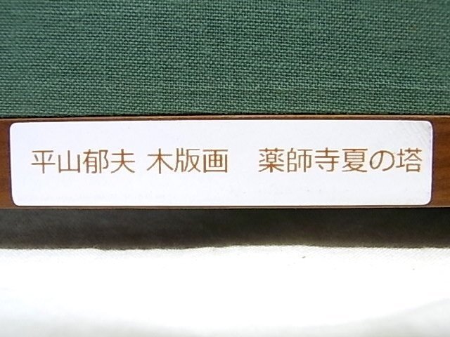 e03722 真作保証 木版画 平山郁夫 「薬師寺夏の塔」 色紙絵 額縁