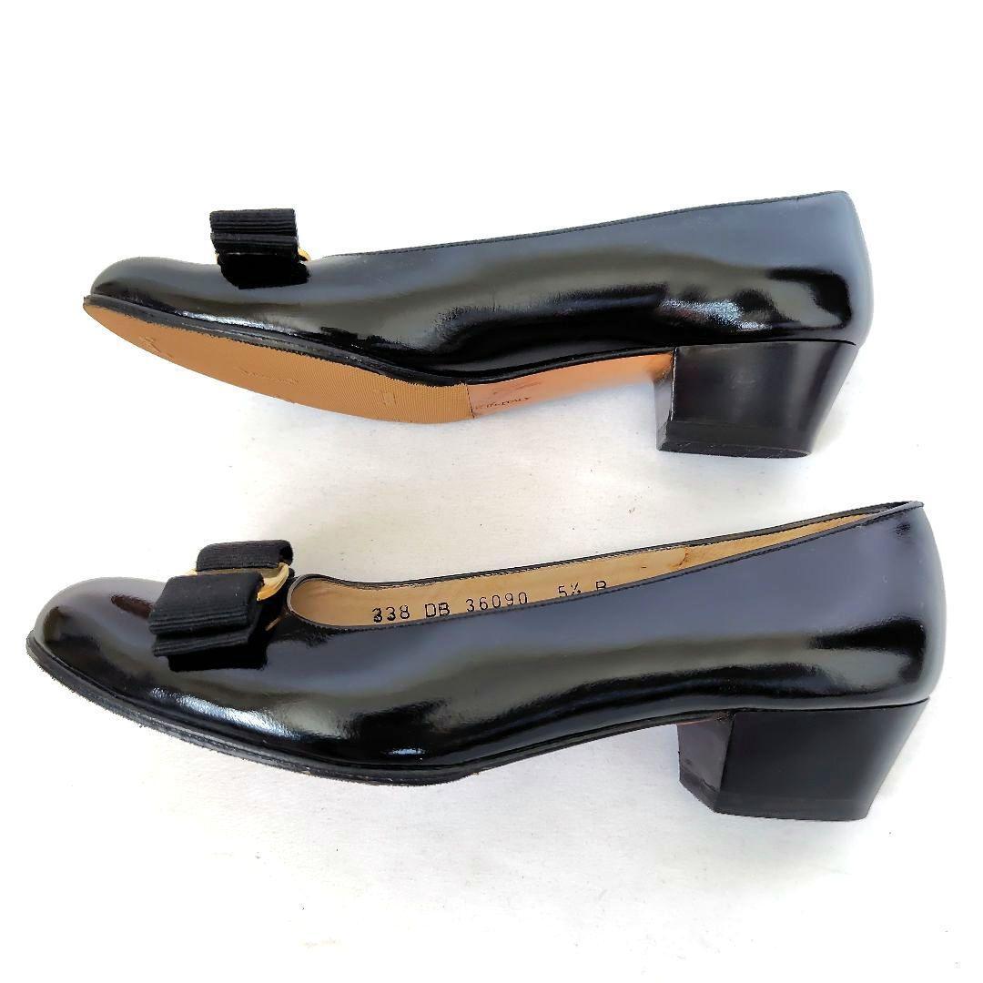 良品フェラガモ【Ferragamo】ヴァラ エナメル パンプス 黒