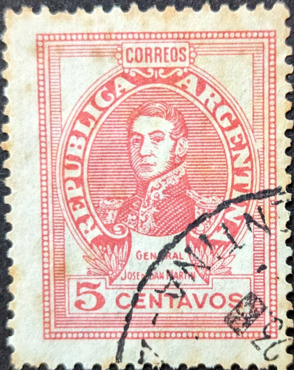 【外国切手】 アルゼンチン 1945年 発行 普通切手、サンマルティン将軍-2 消印付き