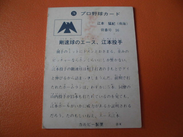 カルビープロ野球カード◆73年 南海 江本 No.74