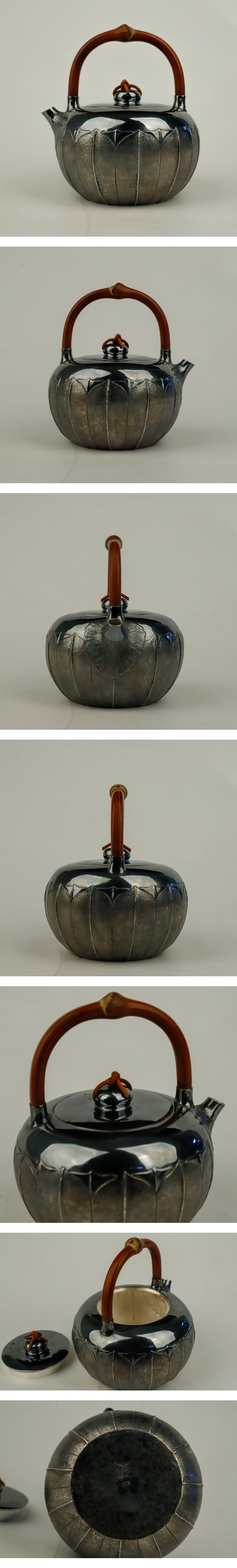 純銀保証 北村静香造 瓜形筋入 湯沸 銀瓶 純銀製 時代物 美術品 煎茶道具