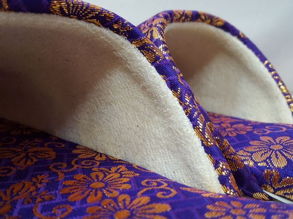 ◆新品◆高級 金襴スリッパ Lサイズ 紫 28㎝◆金襴 紺 スリッパ 寺院仏具 仏具 仏壇 法事 法要