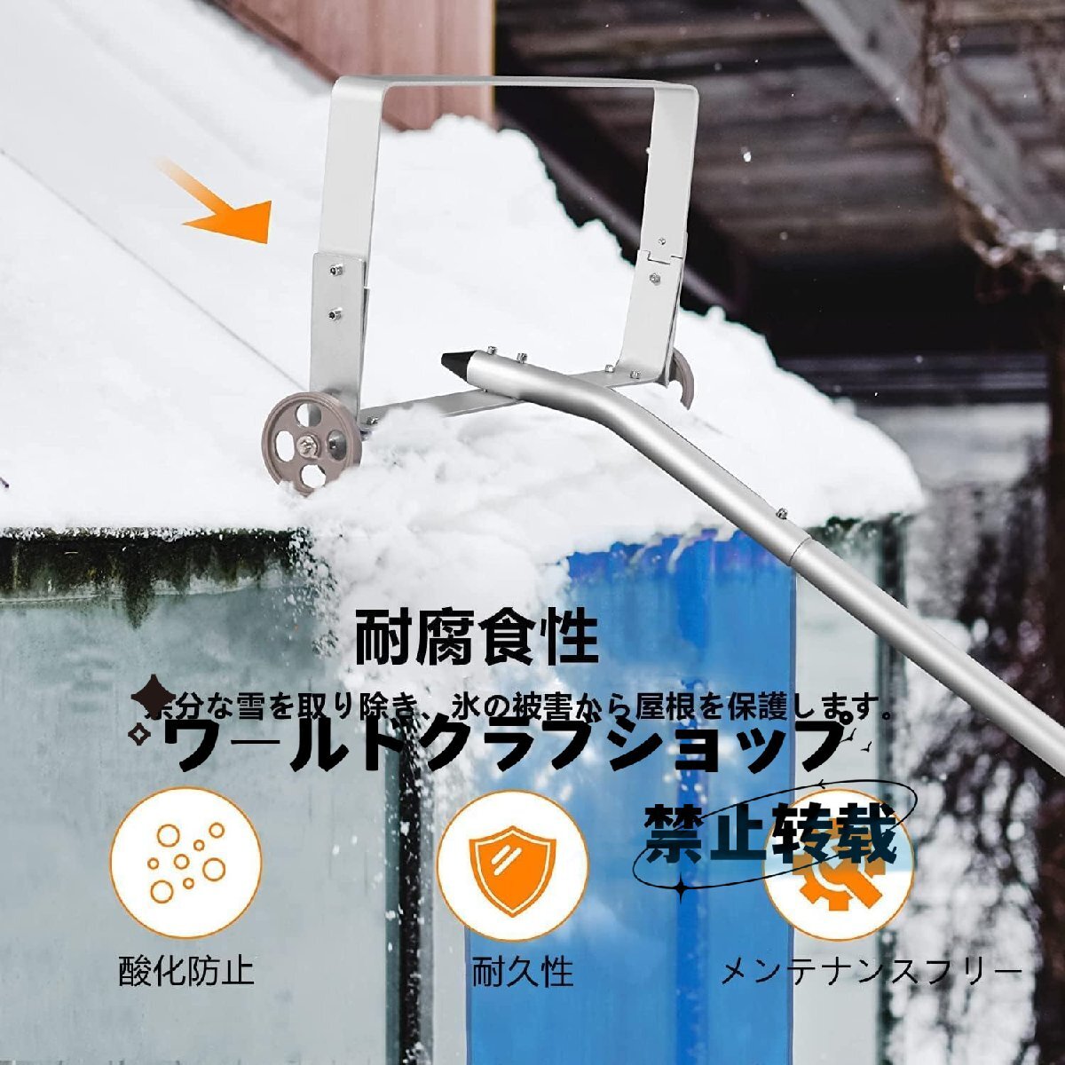 スノーブレード - 重い雪や氷の塊を切り裂くように設計されたブレードヘッドにより、ルーフレーキは簡単に雪を除去することができます。