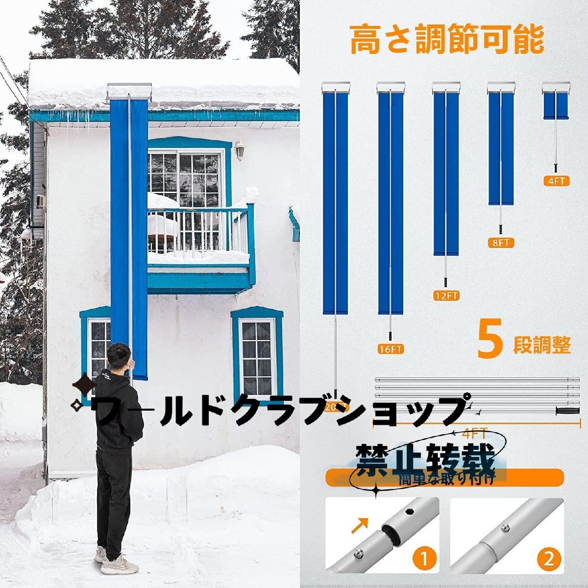雪降ろし棒 屋根 スノーダンプ 屋根雪かき 雪下ろし 道具アルミ 組立式 多機能 雪庇落とし 全長約610cm 長さ 5段階調整可能 ロング雪落とし