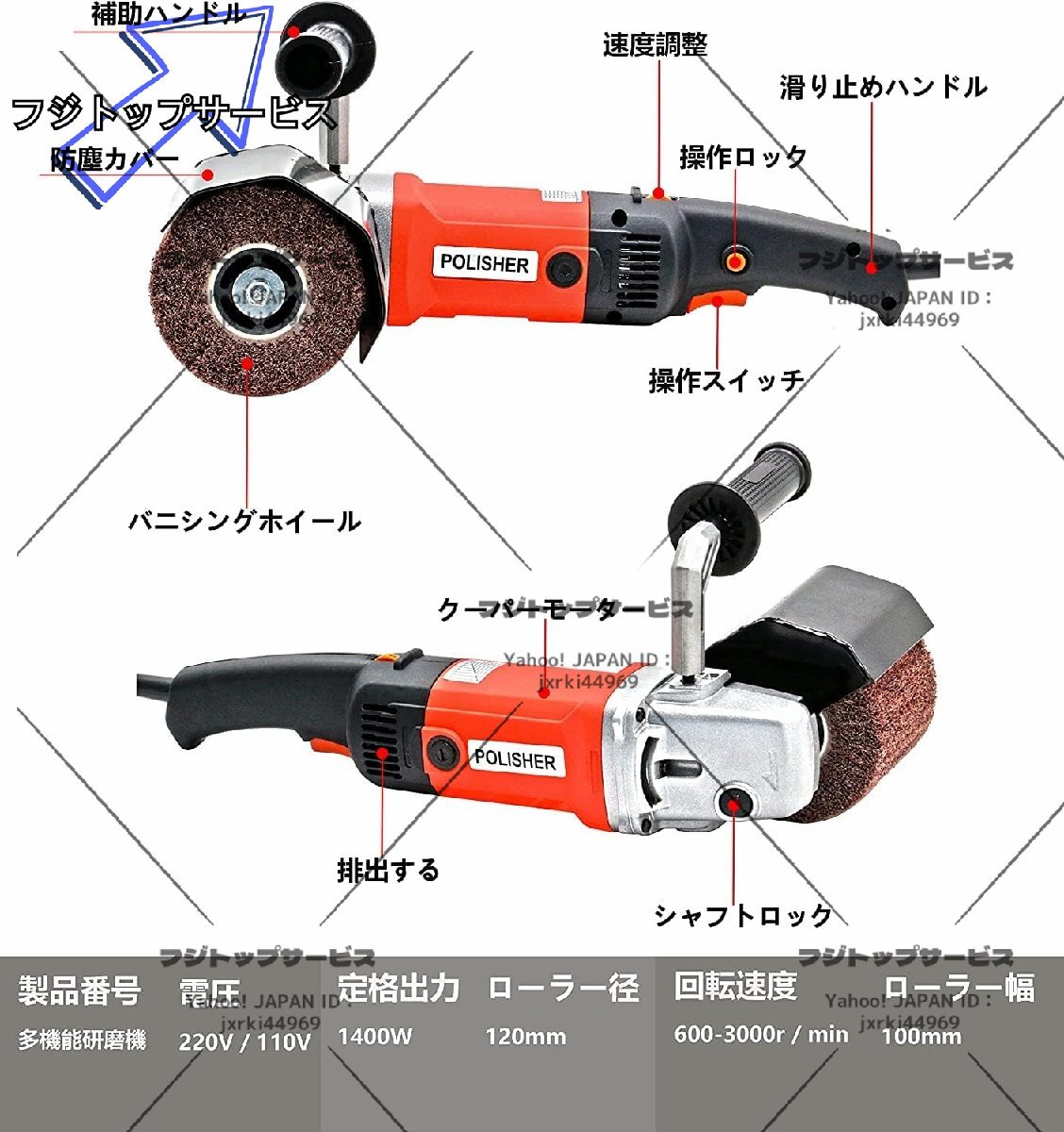 1400W 電気研磨機 研磨工具 グラインダー ポリッシャー 金属の研磨 バリ取り 研磨工具 電動工具 電動サンダー 金属/木材/ステンレス