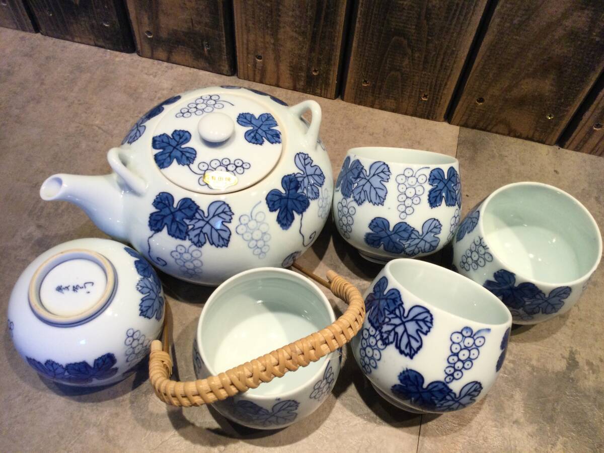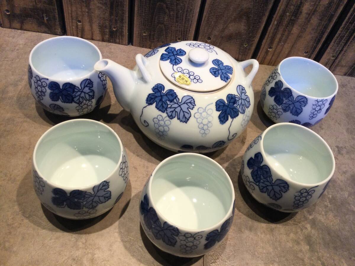 ・ 新品・未使用 有田焼 茶器 急須 湯呑 5客 セット 葡萄柄 ぶどう 保管品 です。