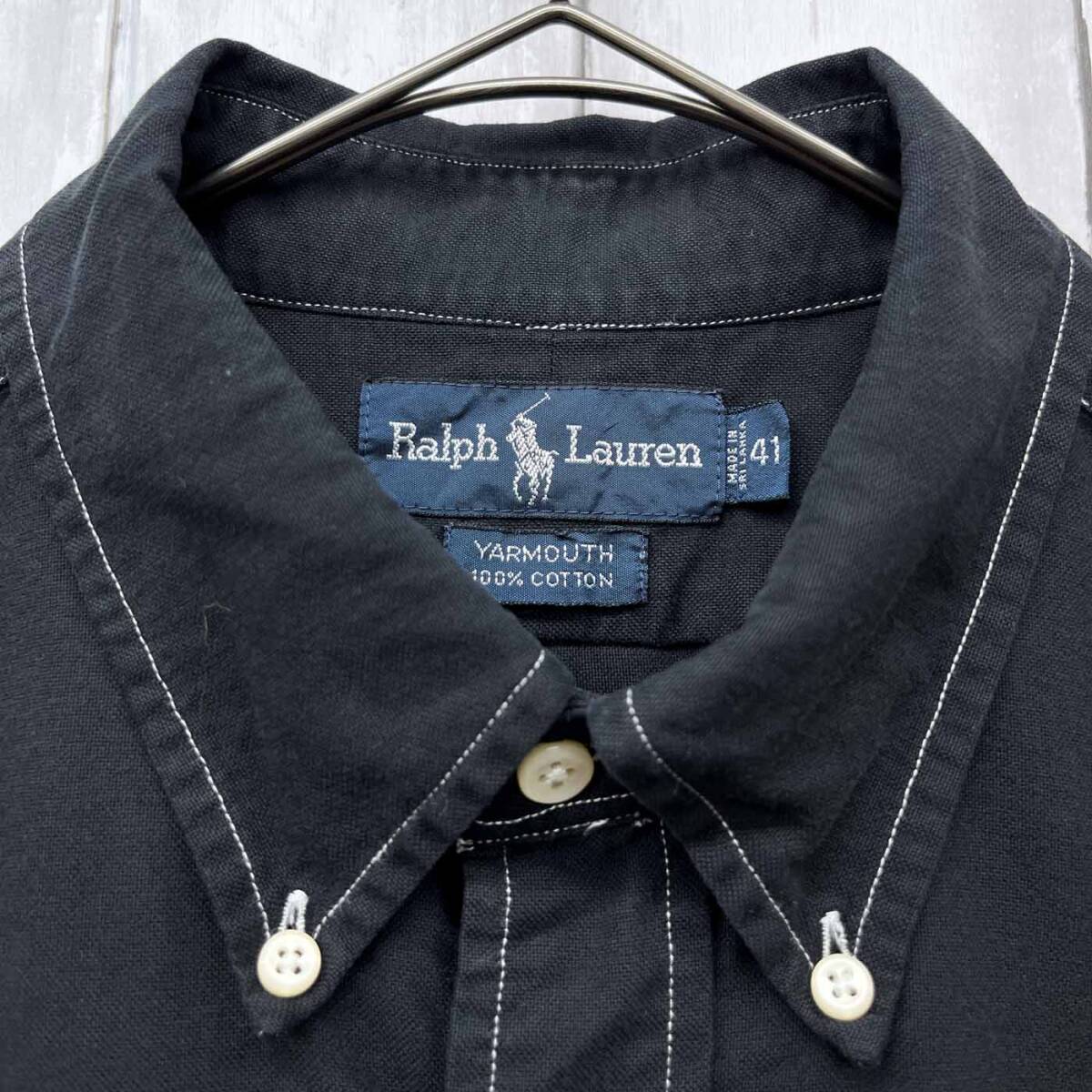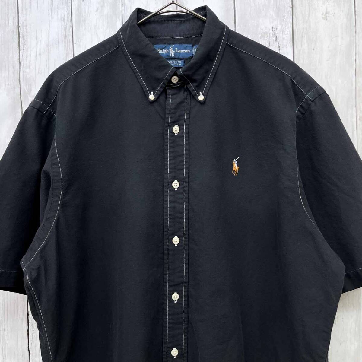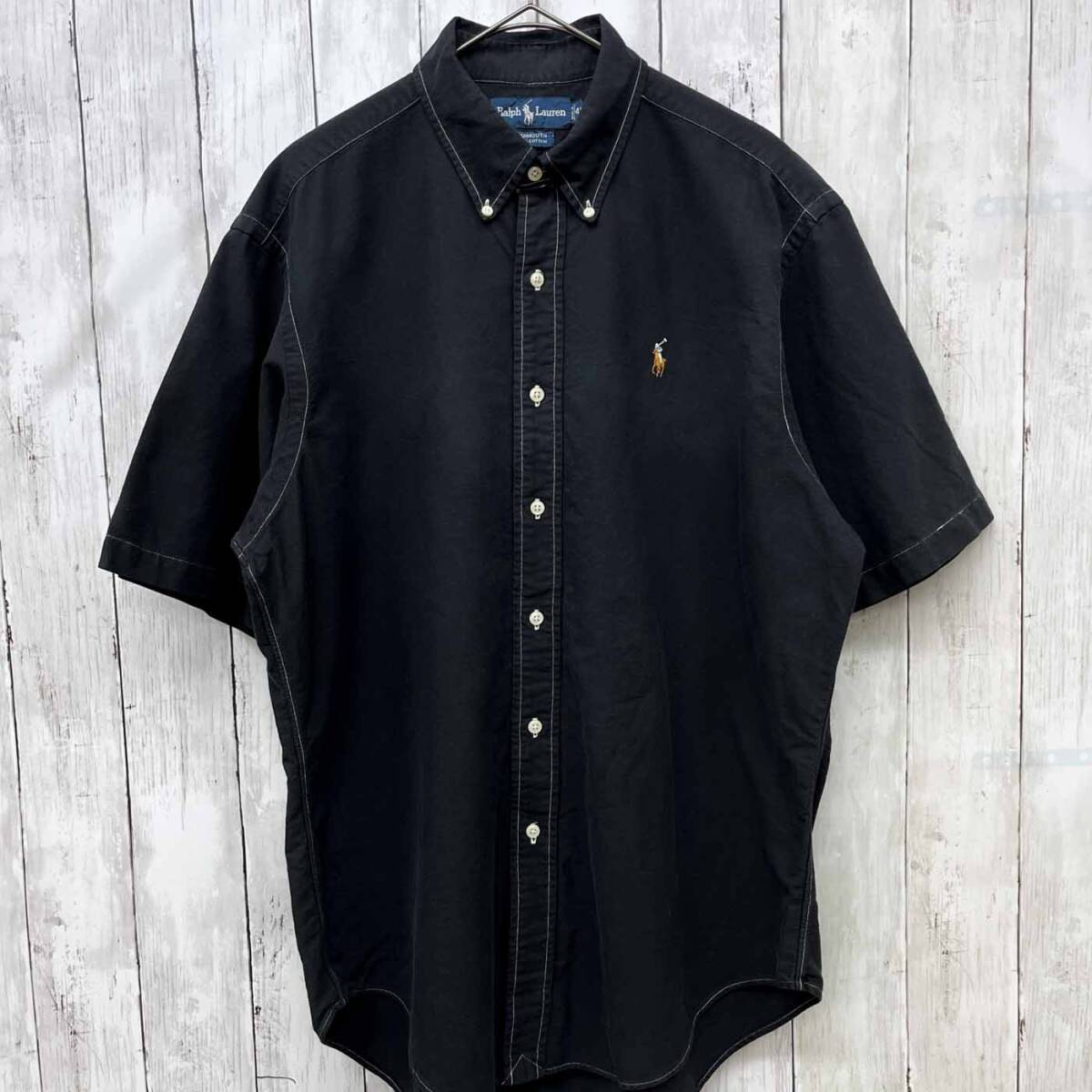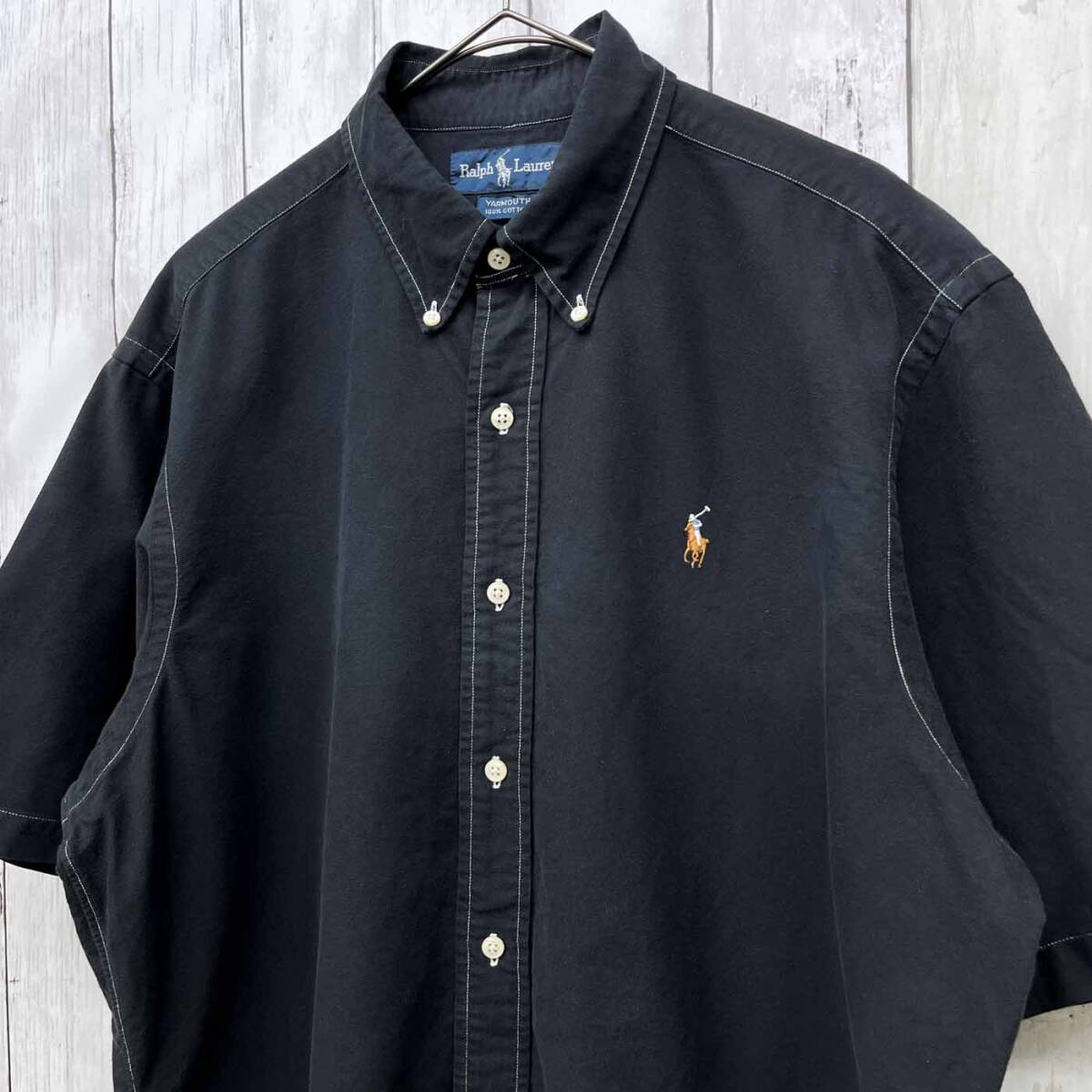 ラルフローレン Ralph Lauren 半袖シャツ メンズ ワンポイント 黒 YARMOUTH コットン100% 41(L相当)サイズ 6-387
