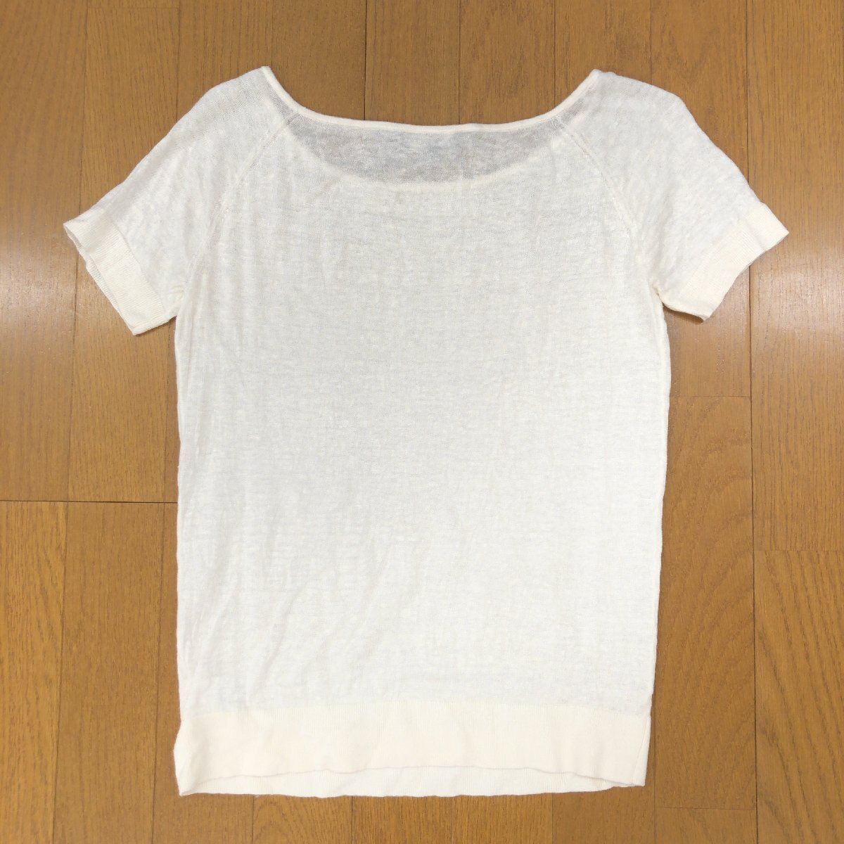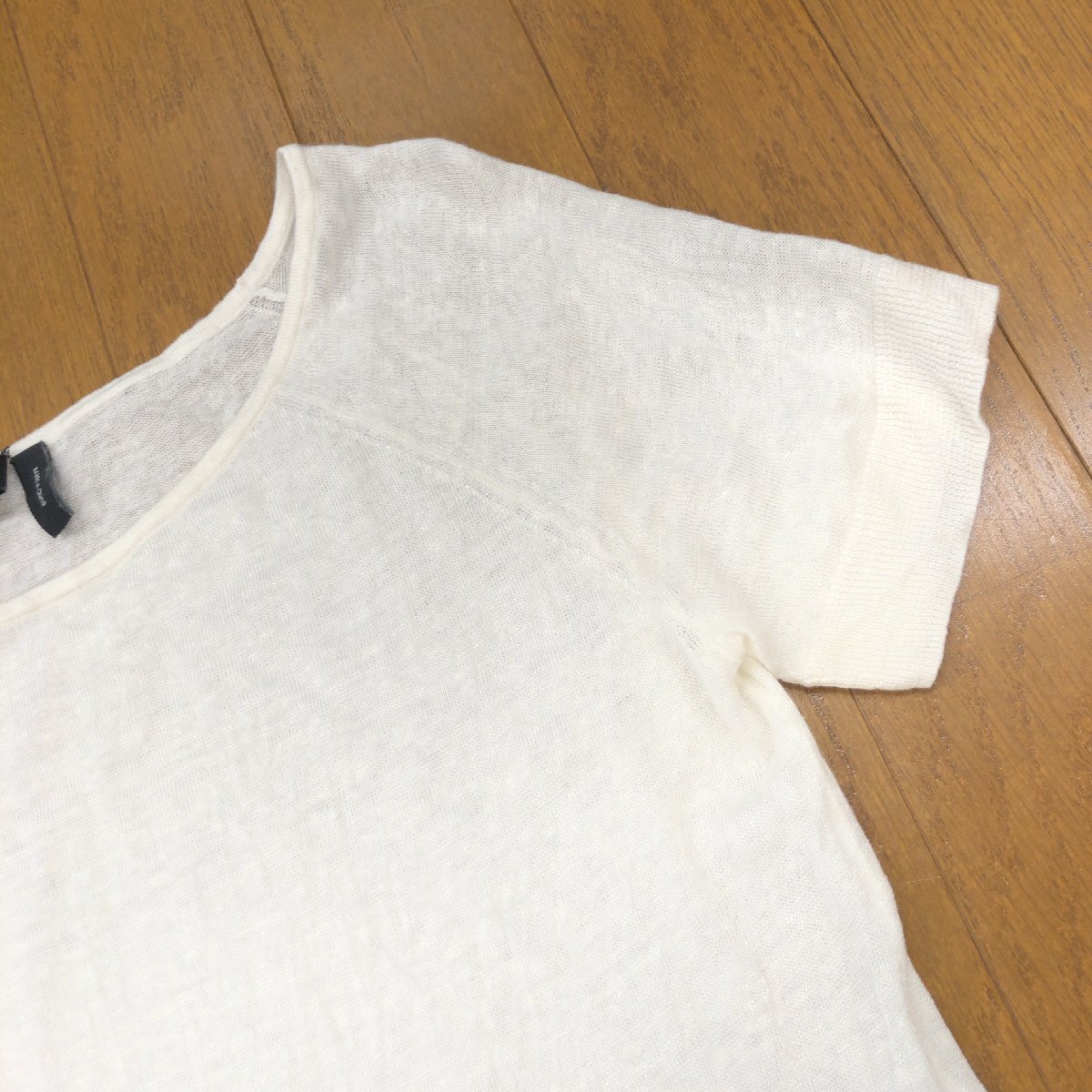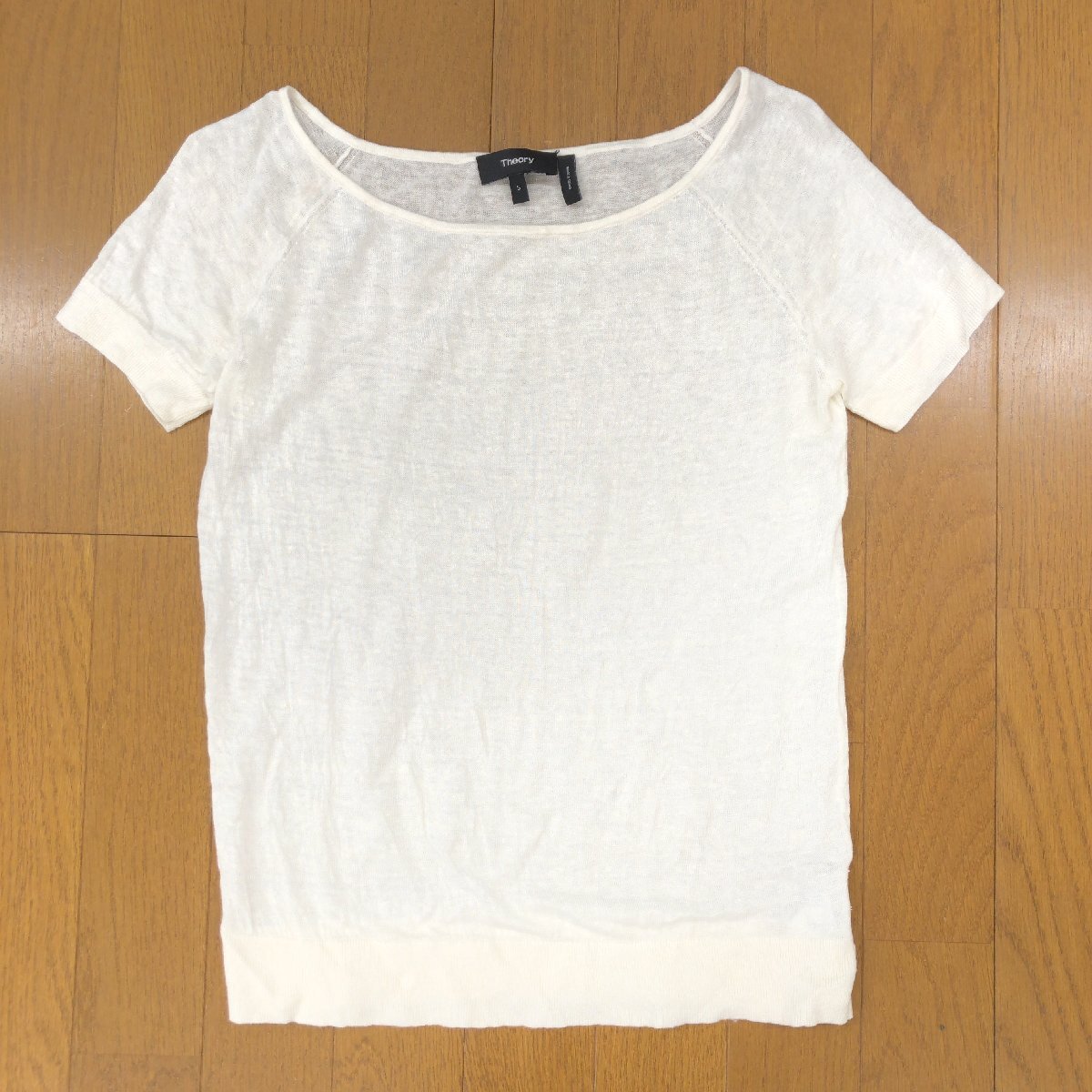 Theory セオリー 定価22,000円+税 麻 リネン サマーニット セーター S 白 ホワイト オープンネック カットソー 半袖 レディース 婦人