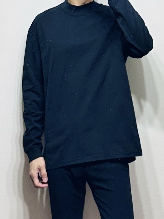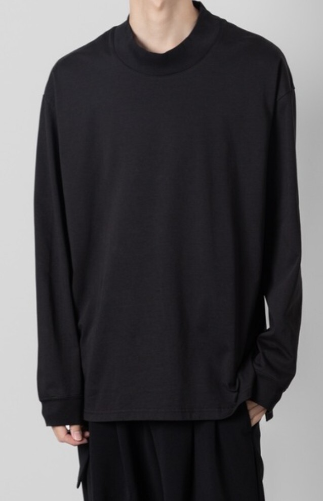 定価2万 ATTACHMENT SUVIN COTTON JERSEY MOCKNECK L/S TEE 2 ブラック カットソー ロングTシャツ アタッチメント ニット