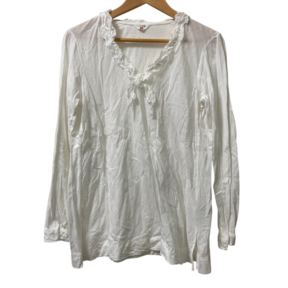 美品 45rpm フォーティーファイブアールピーエム 長袖 リボン プルオーバー ブラウス サイズ3 ホワイト